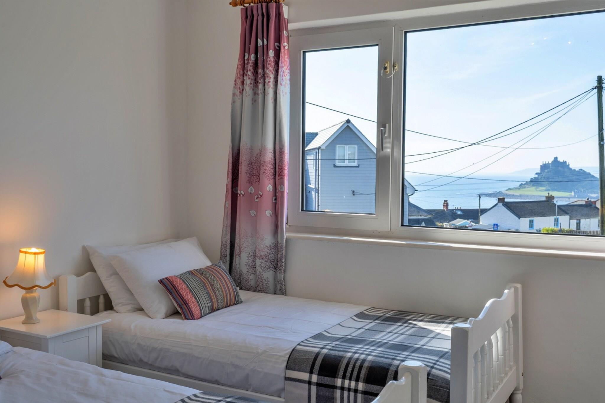 Dieses charmante Ferienhaus mit drei Schlafzimmern liegt an der atemberaubenden Küste Cornwalls und ist ein idealer Rückzugsort für Familien, Paare oder Gruppen von Freunden. Egal, ob Sie auf der Suche nach einem ruhigen Zufluchtsort am Meer oder einem actiongeladenen Abenteuer sind, diese entzückende Unterkunft bietet alle Annehmlichkeiten, die Sie für einen unvergesslichen Aufenthalt benötigen. Die einladende Atmosphäre kombiniert mit dem Charme der Küste bietet die perfekte Kulisse zum Entspannen und Erkunden. Entdecken Sie im Inneren drei gut ausgestattete Schlafzimmer, ein gemütliches Doppel-, ein Zweibett- und ein Einzelzimmer, ideal für Familien oder Freunde, die sich nach einem Tag voller Abenteuer an der Küste entspannen möchten. Ein modernes Familienbadezimmer sorgt für zusätzlichen Komfort und sorgt dafür, dass sich jeder wie zu Hause fühlt. Das Herzstück des Hauses ist eine stilvolle und voll ausgestattete Küche, die auf kulinarische Kreativität ausgelegt ist. Es geht nahtlos in den Ess- und Wohnbereich über und schafft einen warmen Raum, der sich perfekt zum geselligen Beisammensein und zum Genießen gemeinsamer Mahlzeiten eignet, sei es ein gemütliches Frühstück oder ein Festmahl mit frischen Produkten aus der Region. Treten Sie nach draußen in einen ruhigen Rückzugsort im Garten auf der Rückseite des Hauses, wo Sie die Sonne genießen, im Freien speisen oder es sich mit einem guten Buch gemütlich machen und dabei den wunderschönen Meerblick genießen können. Diese malerische Küstenstadt liegt nicht weit von Penzance entfernt und bietet atemberaubende Ausblicke auf den legendären St. Michael’s Mount, der bei Ebbe zu Fuß erreichbar ist. Marazion ist reich an Geschichte und lokalen Überlieferungen und bietet goldene Sandstrände, die zum Schwimmen, Paddeln und Windsurfen einladen, sowie eine Vielzahl charmanter Cafés, traditioneller Pubs und Kunsthandwerksläden, die es zu erkunden gilt. Wenn Sie zusätzlichen Platz benötigen, sollten Sie diesen Zufluchtsort zusammen mit dem Nachbargrundstück buchen, um den perfekten Gruppenurlaub zu verbringen.