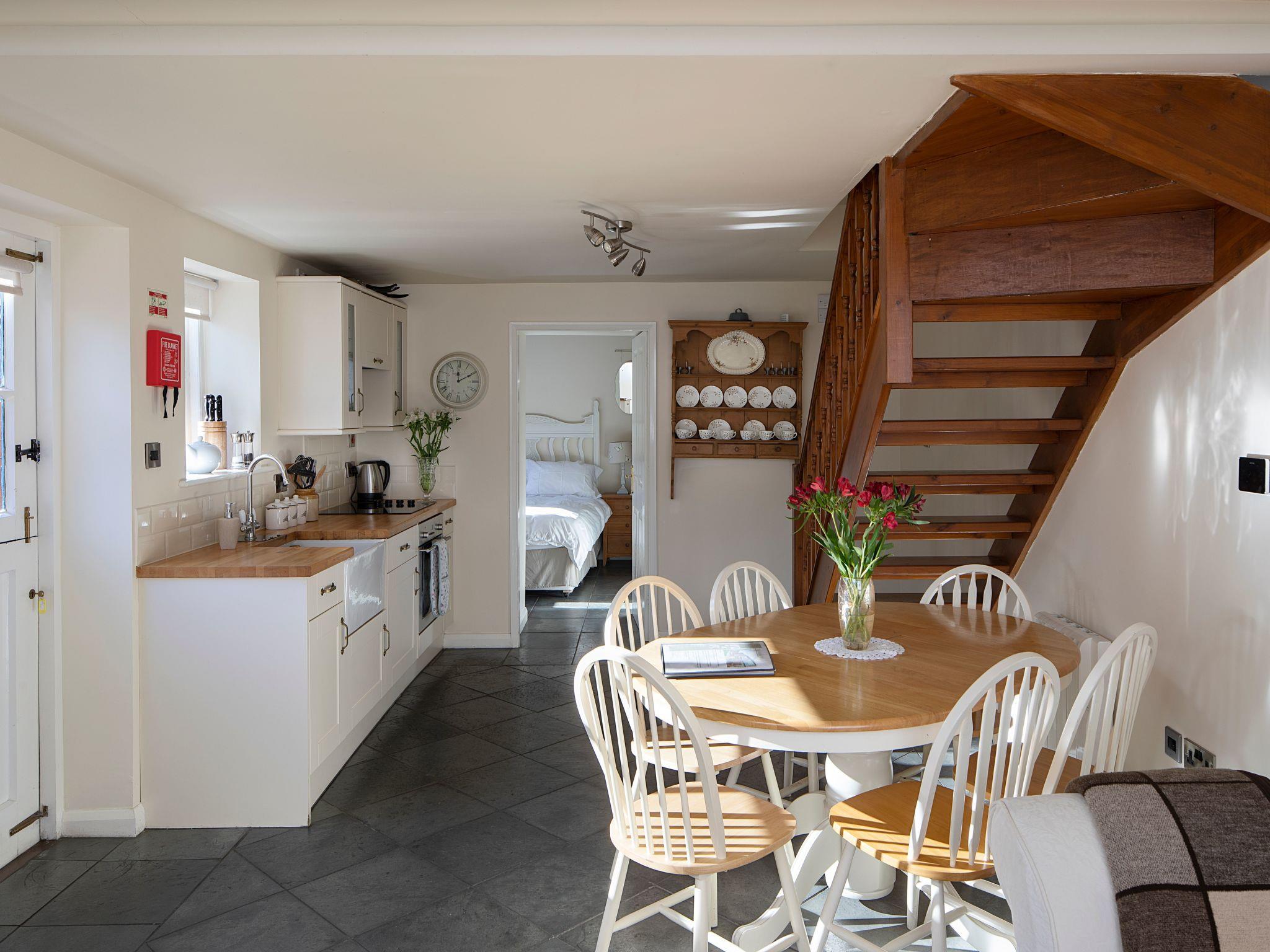 Der Stable Block wurde 2006/7 zu einer gemütlichen 3-Zimmer-Selbstversorger-Ferienunterkunft umgebaut, die es heute ist. Das Schlafzimmer im Erdgeschoss öffnet sich zum Garten und ist geeignet für eingeschränkte Mobilität mit einem eigenen Duschbad alles auf einer Ebene.