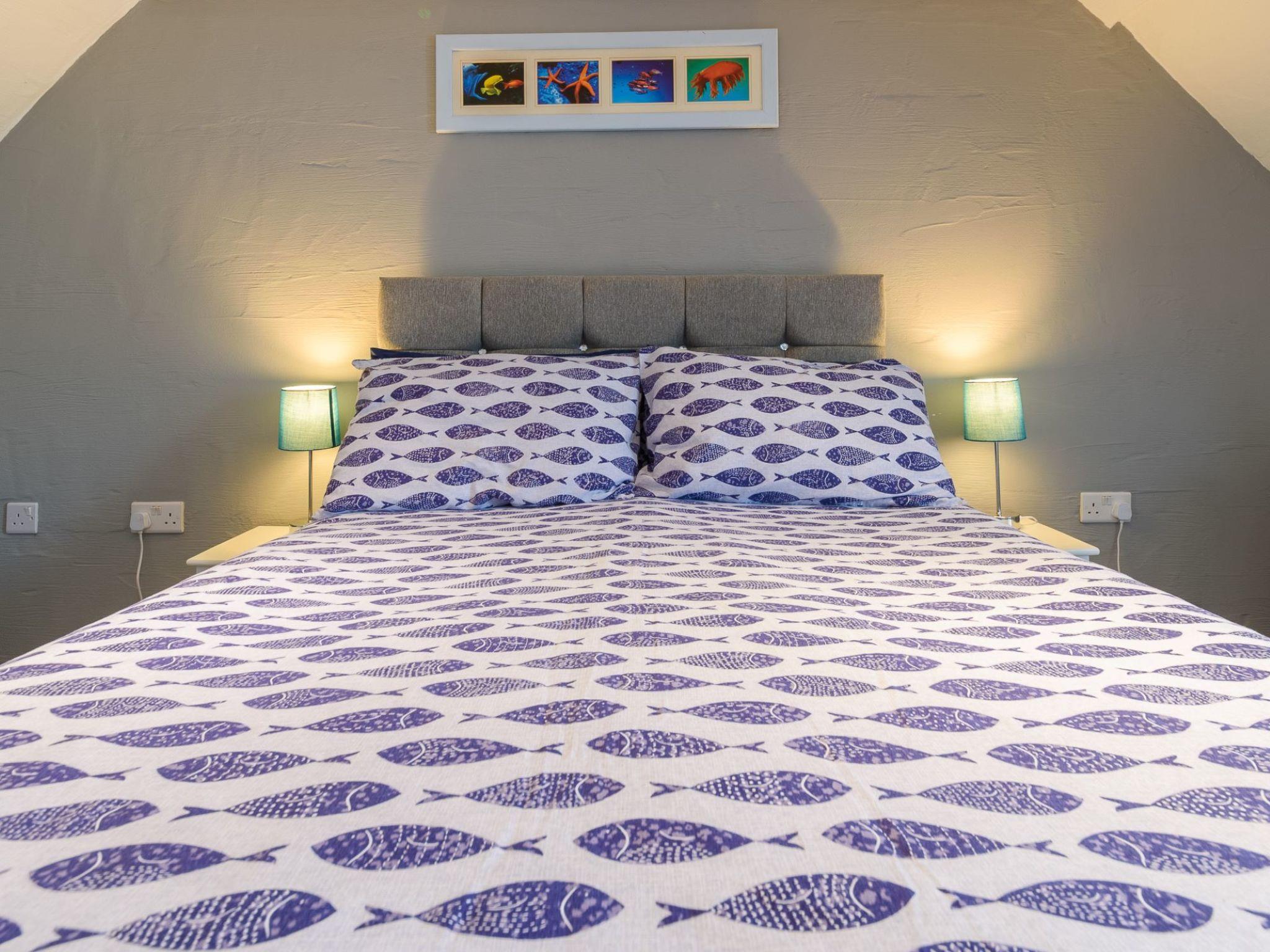 "Stargazey Cottage", 3-Zimmer-Landhaus 49 m2. Komfortabel und geschmackvoll eingerichtet: offenes Wohn-/Esszimmer mit TV (Flachbildschirm). Offene Küche (Backofen, 4 Glaskeramikplatten, Toaster, Wasserkocher, Mikrowelle) mit Esstisch. Dusche/WC. Obergeschoss: 1 Doppelzimmer mit 1 Doppelbett. 1 Zimmer mit 1 x 2 Etagenbetten. Zur Verfügung: Waschmaschine, Wäschetrockner, Kinderhochstuhl, Babybett bis 2 Jahre (extra). Internet (Wireless LAN). Bitte beachten: geeignet für Familien. TV nur EN. Rauchmelder, Feuerlöscher.