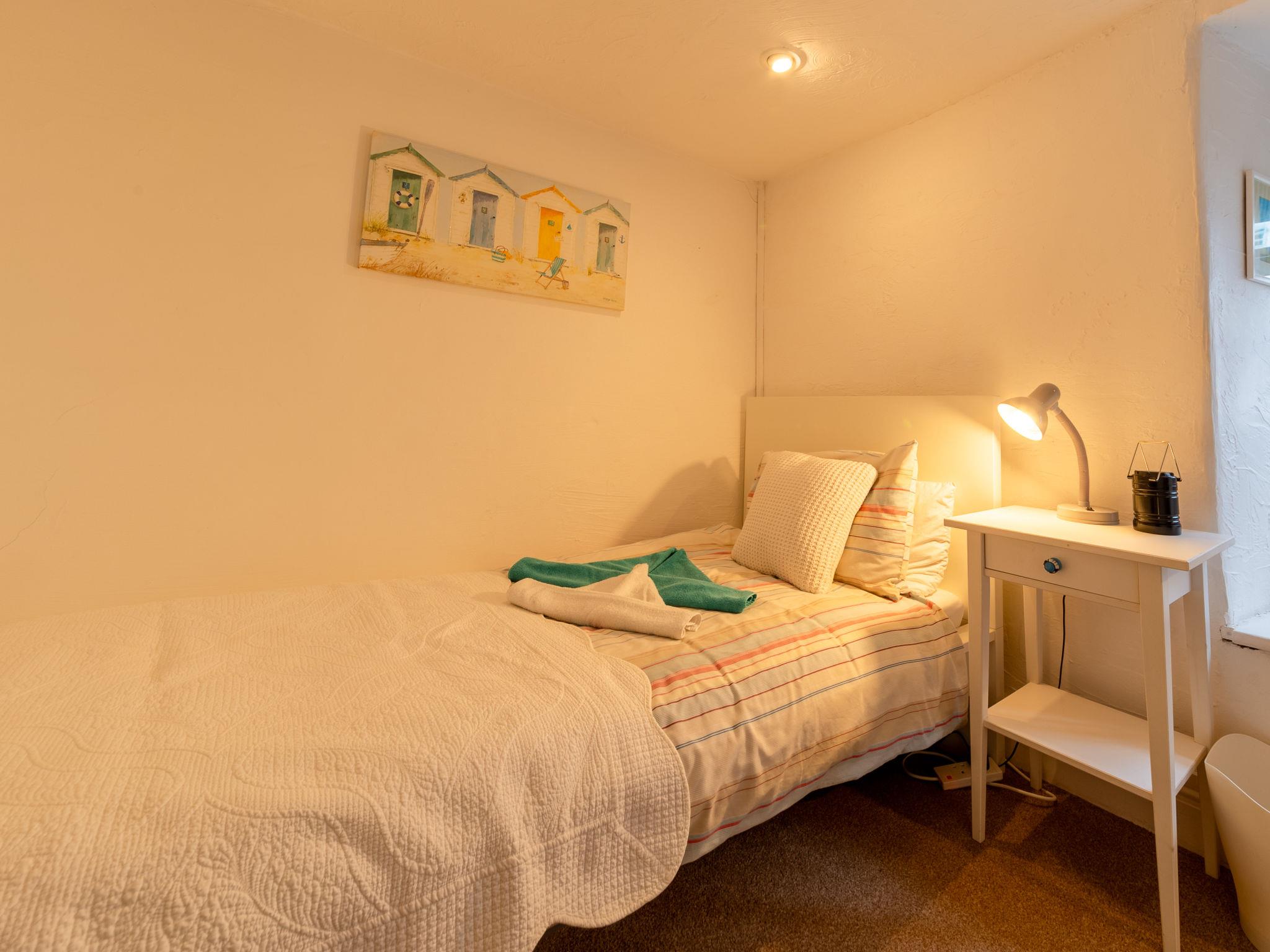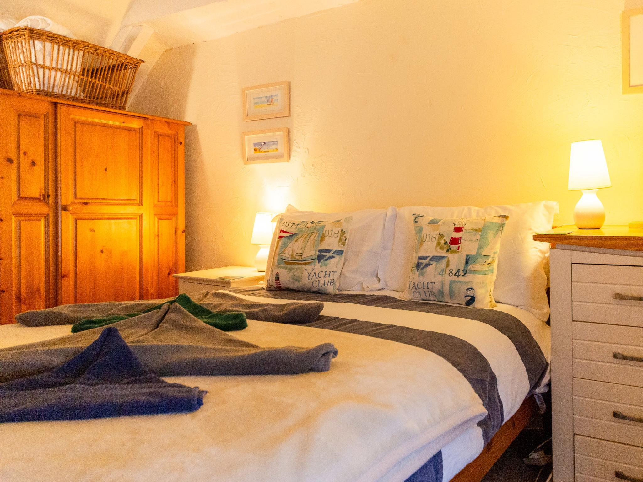 "Piskey Cottage", 3-Zimmer-Landhaus 49 m2. Geschmackvoll und stilvoll eingerichtet: offenes Wohn-/Esszimmer mit Esstisch, TV, CD, DVD Sammlung vorhanden, E-Heizung und Holzofen. Kleine, offene Küche (4 Glaskeramikplatten, Toaster, Wasserkocher, Mikrowelle). Obergeschoss: 1 Zimmer mit 1 Bett. Bad, Dusche/WC. 2. Obergeschoss: 1 Doppelzimmer mit 1 Doppelbett. Zur Verfügung: Waschmaschine, Wäschetrockner. Internet (WLAN). Bitte beachten: Maximal 2 Haustiere/Hunde erlaubt. TV nur EN. Rauchmelder.