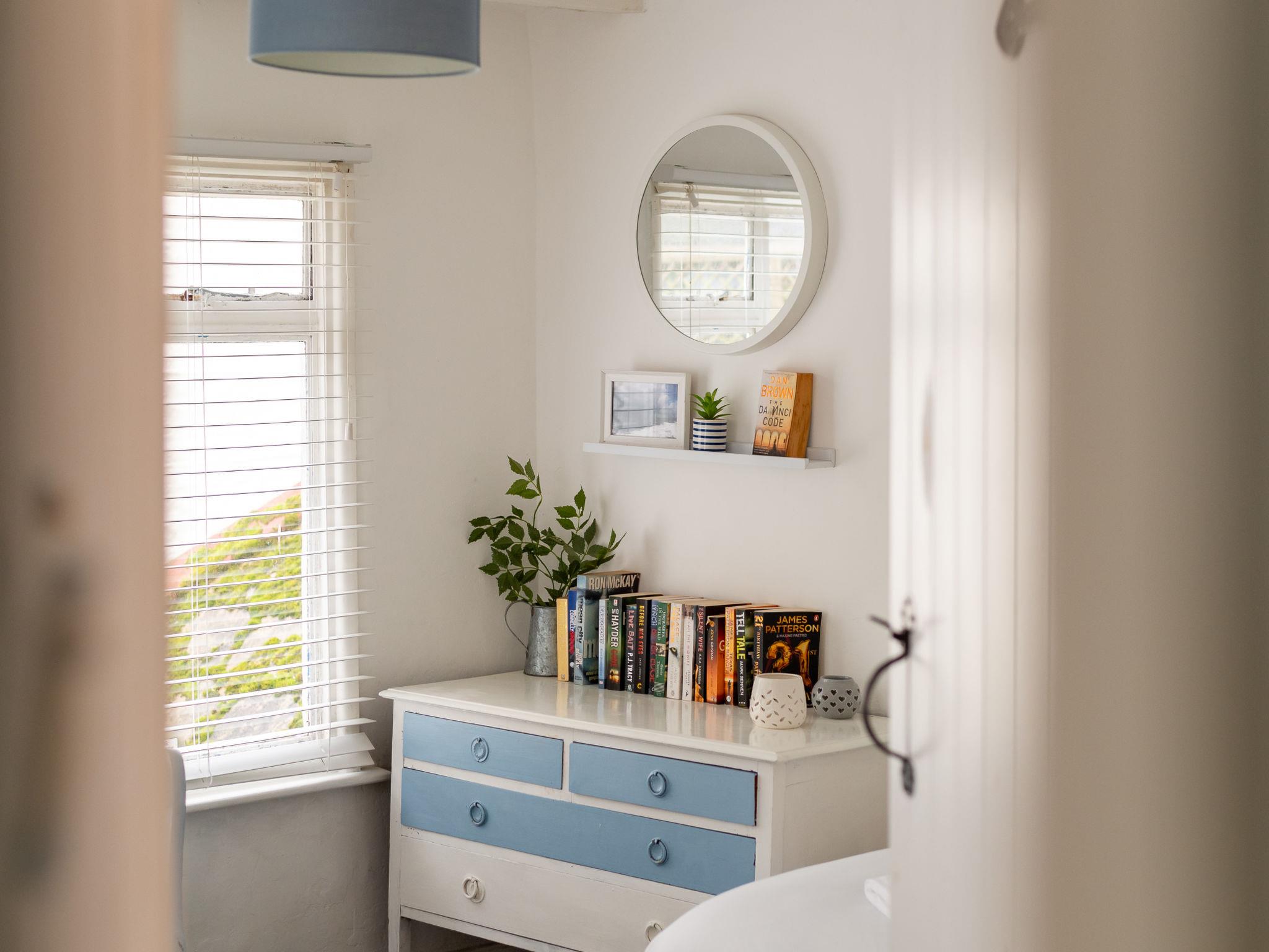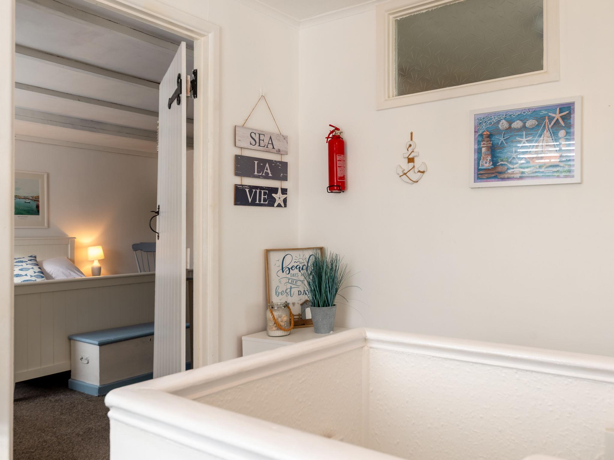"Mermaid Cottage", 3-Zimmer-Landhaus. Geschmackvoll und stilvoll eingerichtet: offenes Wohn-/Esszimmer mit Esstisch, Digital-TV, E-Heizung und Holzofen. (Backofen, 4 Glaskeramikplatten, Mikrowelle). Obergeschoss: 1 Doppelzimmer mit 1 Doppelbett. 1 Doppelzimmer mit 2 Betten (90 cm, Länge 190 cm) mit Bad. Zur Verfügung: Waschmaschine. Internet (WLAN). Maximal 1 Haustier/Hund erlaubt.