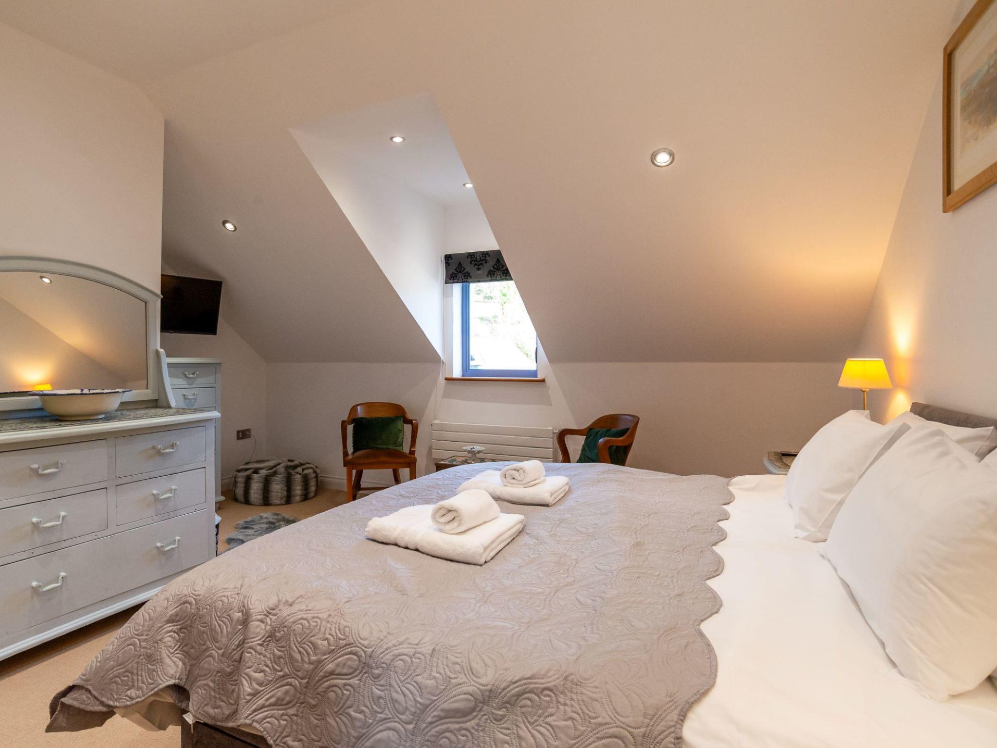 Mevagissey: Modernes, luxuriöses Haus "The Net Loft", auf 4 Stockwerken, umgeben von Bäumen. Im Ort Mevagissey, 10 m vom Waldrand, 500 m vom Meer, 500 m vom Strand, 1 m direkt am Fluss. Zur Mitbenutzung: Park, Liegewiese. Kinderspielplatz (Rutschbahn, Schaukel). Im Hause: Zentralheizung, Waschmaschine, Wäschetrockner. Öffentliches Parkhaus in 6 m, extra. Einkaufsgeschäft, Lebensmittelgeschäft 400 m, Supermarkt 7 km, Einkaufszentrum 7 km, Restaurant 400 m, Bar 25 m, Bäckerei 400 m, Café 25 m, Fahrradverleih 2 km, Biergarten 25 m, Bushaltestelle "Mevagissey" 25 m, Bahnstation "St Austell" 7 km, Sandstrand "Mevagissey" 500 m, Kieselstrand "Polstreath" 500 m, Tauchzentrum 2 km. Golfplatz (18 Loch) 9 km, Tennis, Sportzentrum 25 m, Wanderwege ab Haus 100 m, Kinderspielplatz 5 m, Angelmöglichkeit 500 m. Nahe gelegene Sehenswürdigkeiten: Lost Gardens of Heligan 2 km, Charlestown Historic Harbour 8 km, Eden Project 15 km, Restormel Castle 29 km, St Mawes Castle 33 km, Lanhydrock House & Garden 36 km. Bekannte Seen in der Umgebung sind gut erreichbar: Silbyback Lake 45 m. Wandergebiete: South West Coast Path 500 m, Saints Trail 12 m, Kingswood Pentewan 6 m.
