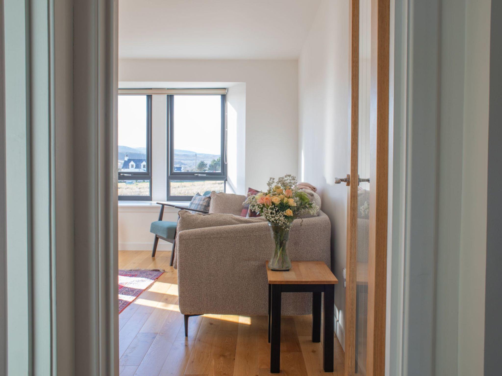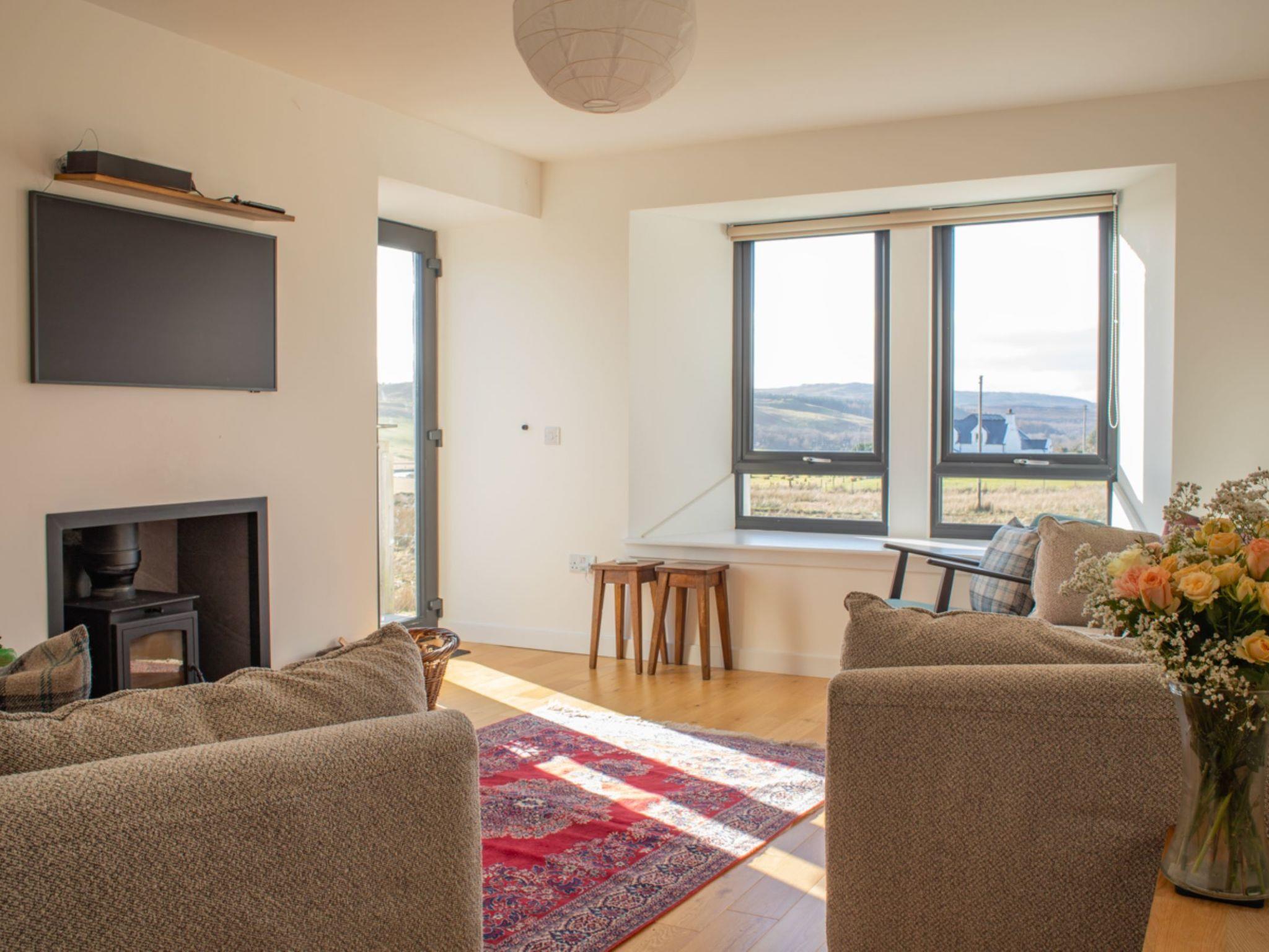 "Carbost Cottage", 5-Zimmer-Landhaus 140 m2 auf 2 Stockwerken. Komfortabel und gemütlich eingerichtet: Wohnzimmer mit TV (Flachbildschirm), Holzofen. Ausgang zum Gartensitzplatz. 1 Doppelzimmer mit 1 Doppelbett. Grosse, offene Küche im Eingang (Backofen, Geschirrspüler, 4 Glaskeramikplatten, Toaster, Wasserkocher, Mikrowelle, Tiefkühler) mit Esstisch. Dusche/WC. Ölheizung. Obergeschoss: 2 Doppelzimmer, jedes Zimmer mit 1 Doppelbett. 1 Zimmer mit 2 Betten. Bad/WC. Holzdielenboden. Schöne Sicht auf die Landschaft. Zur Verfügung: Waschmaschine, Wäschetrockner, Babybett bis 2 Jahre. Bitte beachten: geeignet für Familien. Nichtraucher-Unterkunft. TV nur EN. Rauchmelder. HI-31039-F