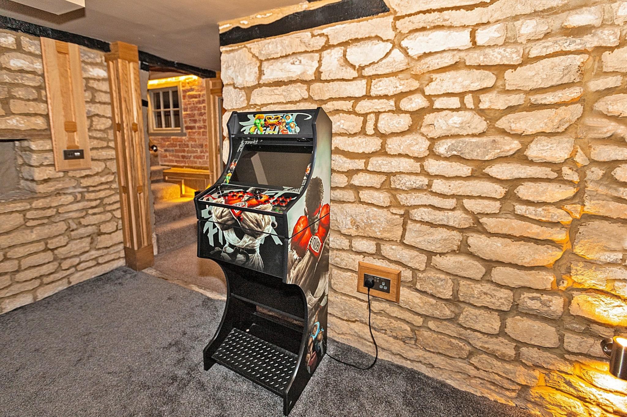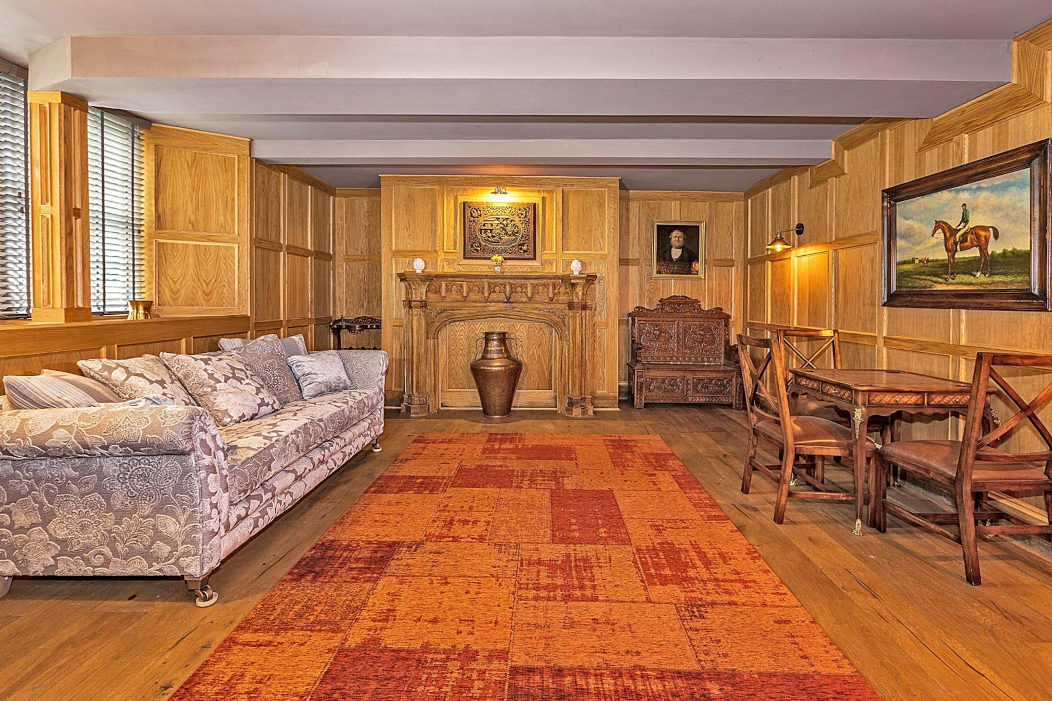Dieses wunderschön renovierte, denkmalgeschützte Herrenhaus bietet einen einzigartigen und luxuriösen Rückzugsort für Familien und Gruppen und bietet Platz für bis zu 17 Gäste. Das Anwesen erstreckt sich über vier Etagen und verfügt über sieben geräumige Schlafzimmer, teilweise mit eigenem Bad. Es verfügt außerdem über ein Spielezimmer mit einem Spielautomaten, eine private Sauna und einen Whirlpool im Freien, der zum Entspannen einlädt. Das Haus ist haustierfreundlich, ein Hund ist gegen Aufpreis gestattet und verfügt über moderne Annehmlichkeiten wie WLAN, Smart-TVs und eine Musikanlage. Das Anwesen bietet ausreichend Parkplätze und ist mit einer Ladestation für Elektrofahrzeuge ausgestattet. Das Ttich Manor Retreat liegt in einer ruhigen Gegend mit atemberaubender Aussicht und einem riesigen Garten. Gäste können malerische Spaziergänge entlang der nahegelegenen Flüsse und Seen unternehmen, was es zu einem idealen Reiseziel für Naturliebhaber macht. Das Anwesen liegt nicht weit von Milton Keynes entfernt und bietet einfachen Zugang zu lokalen Annehmlichkeiten und bietet gleichzeitig die Ruhe eines ländlichen Rückzugsortes. Historische Sehenswürdigkeiten und lokale Sehenswürdigkeiten steigern die Attraktivität des Anwesens, während die ruhige Umgebung für ein erholsames Erlebnis sorgt. Im Inneren verbindet das Anwesen traditionelle Elemente mit modernem Komfort. Die geräumige Küche ist komplett ausgestattet mit drei Öfen, einer Pad-Kaffeemaschine und einem großen Kühl-/Gefrierschrank und eignet sich somit perfekt für die Gruppenverpflegung. Der weitläufige Loungebereich mit U-förmigen Sofas und einem Smart-TV bietet viel Platz zum Entspannen, während zusätzliche Räume wie ein Frühstücksraum und eine Garderobe für zusätzlichen Komfort sorgen. Das Untergeschoss verfügt über die Überreste einer alten Steinburg und dient als Unterhaltungsbereich mit einem Sony-Musiksystem und einer privaten Sauna.