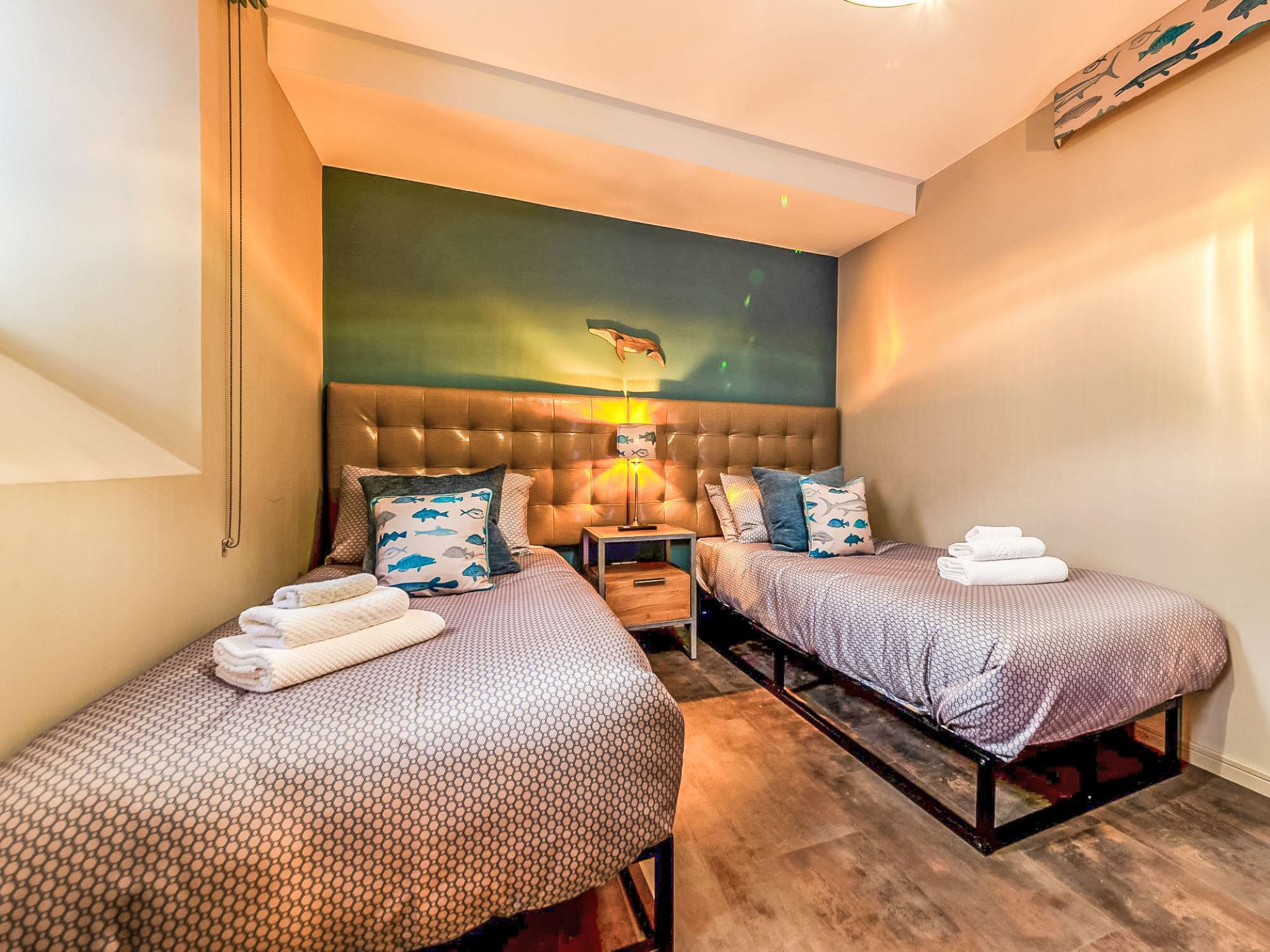 5-Zimmer-Haus 146 m2. Geräumig und hell, vollständig renoviert, luxuriös und stilvoll eingerichtet: 1 grosses Doppelzimmer mit 1 Doppelbett (2 x 75 cm, Länge 180 cm), Bad/Dusche/WC und TV (Flachbildschirm). 1 grosses Doppelzimmer mit 1 Doppelbett (2 x 75 cm, Länge 180 cm), TV (Flachbildschirm). 1 grosses Doppelzimmer mit 1 Doppelbett (200 cm, Länge 180 cm), TV (Flachbildschirm) mit Dusche/WC. Obergeschoss: offenes grosses Wohn-/Esszimmer mit TV (Flachbildschirm). Kleines Wohnzimmer mit TV (Flachbildschirm). Grosse, offene Küche (Backofen, Geschirrspüler, 4 Glaskeramikplatten, Toaster, Wasserkocher, Mikrowelle, Tiefkühler). Sep. WC. Zur Verfügung: Waschmaschine, Wäschetrockner, Haartrockner. Internet (WLAN). Parkplatz. E-Ladestation. Bitte beachten: geeignet für Familien. Maximal 2 Haustiere/Hunde erlaubt. Rauchmelder.