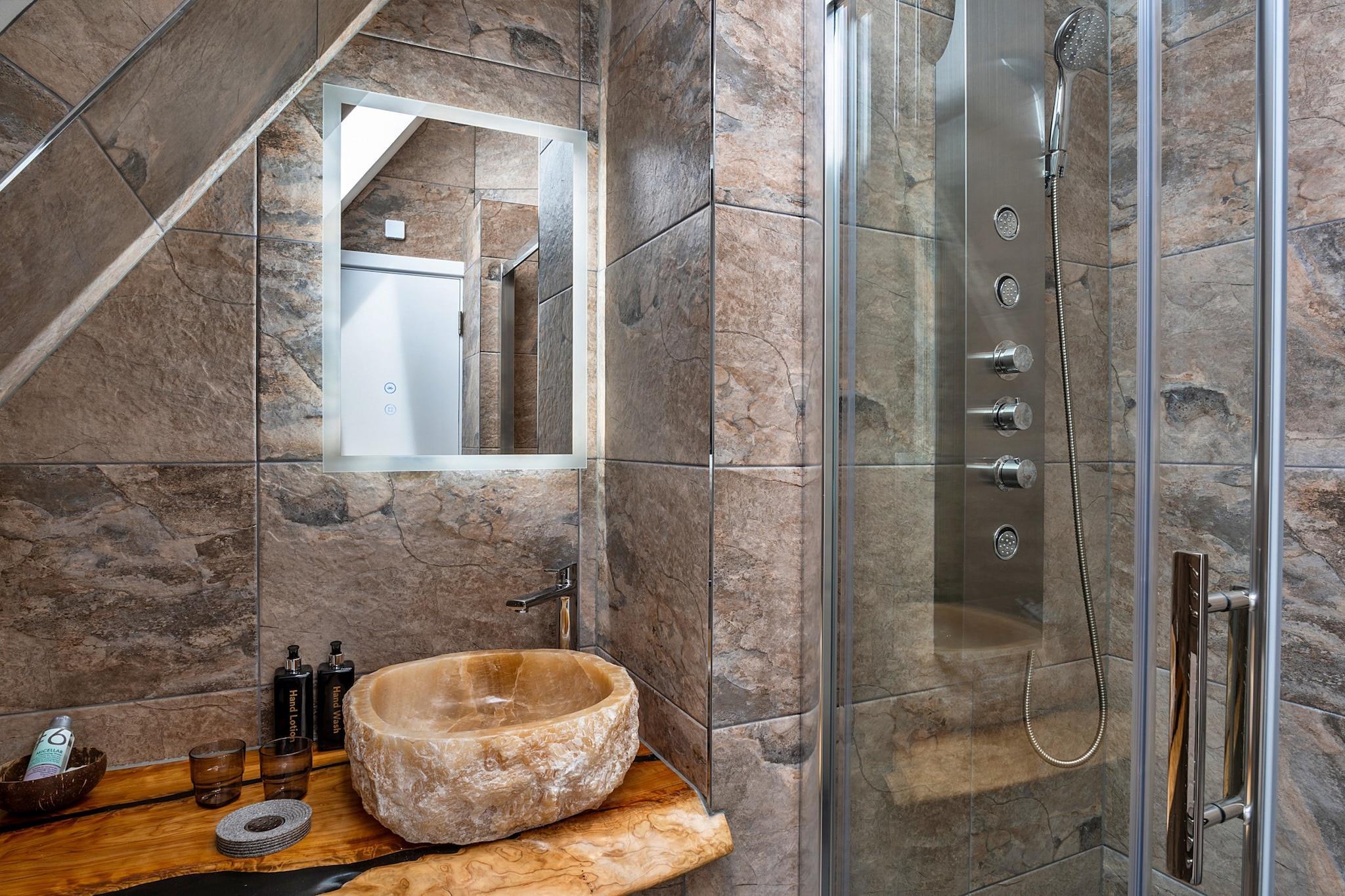 Parterre: (Schlafzimmer mit Badezimmer(Doppelbett king size, Dusche), Schlafzimmer mit Badezimmer(Doppelbett king size, Dusche), Internet) In der 1. Etage: (offene Küche(Wasserkocher, Toaster, Backofen, Mikrowelle, Spülmaschine, Kühlschrank, Tiefkühlschrank, ), Wohn/Esszimmer(TV, Esstisch, Sitzecke), Schlafzimmer mit Badezimmer(Doppelbett king size, Badewanne)) Gartenmöbel, Trockner, Hottub, Waschmaschine, Heizung, Parkplatz, Föhn, Ladestation für Elektroautos