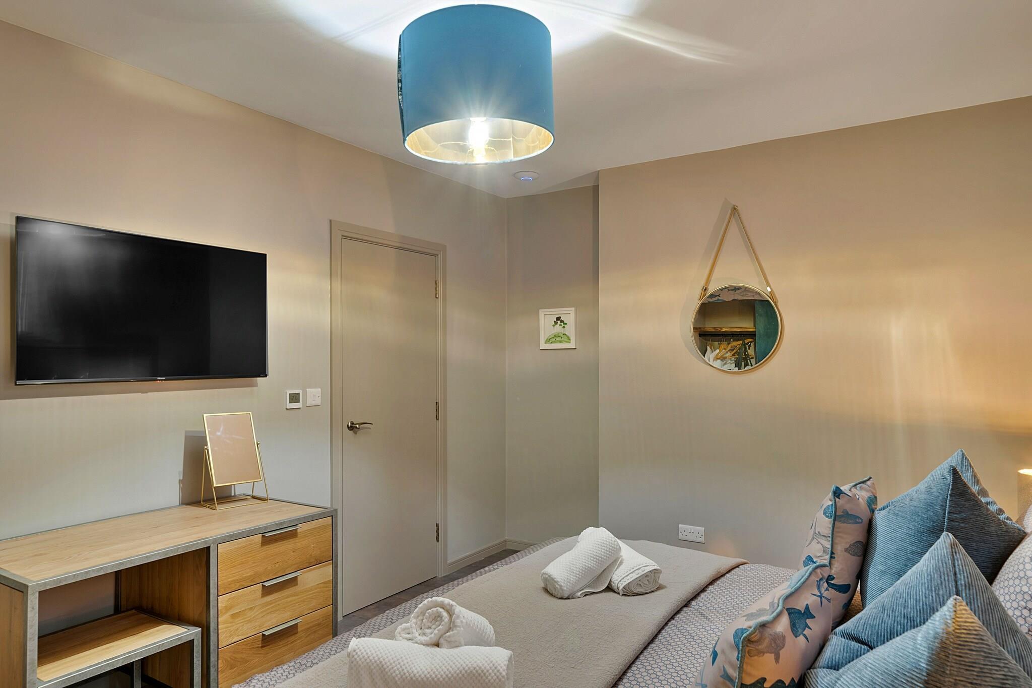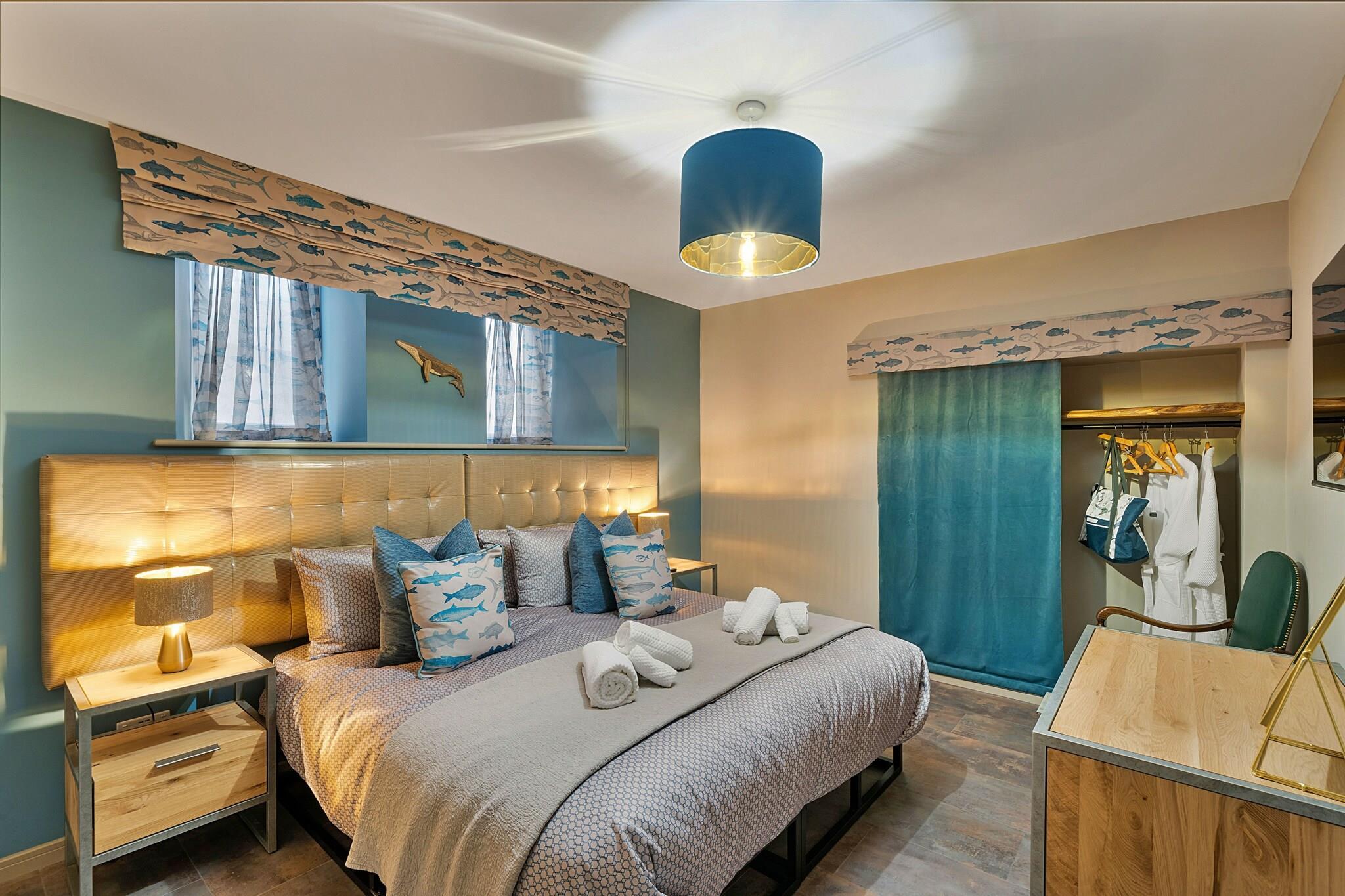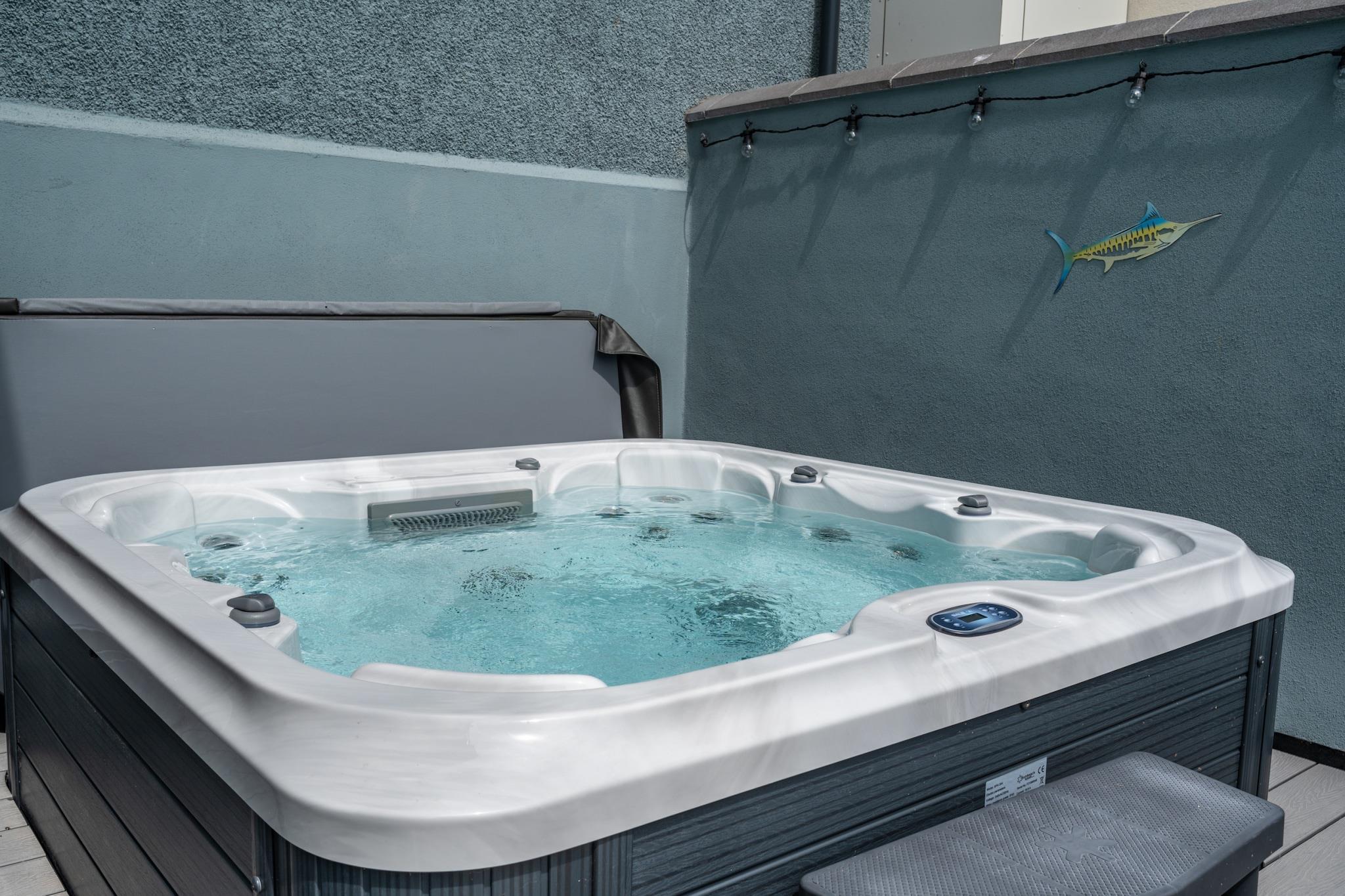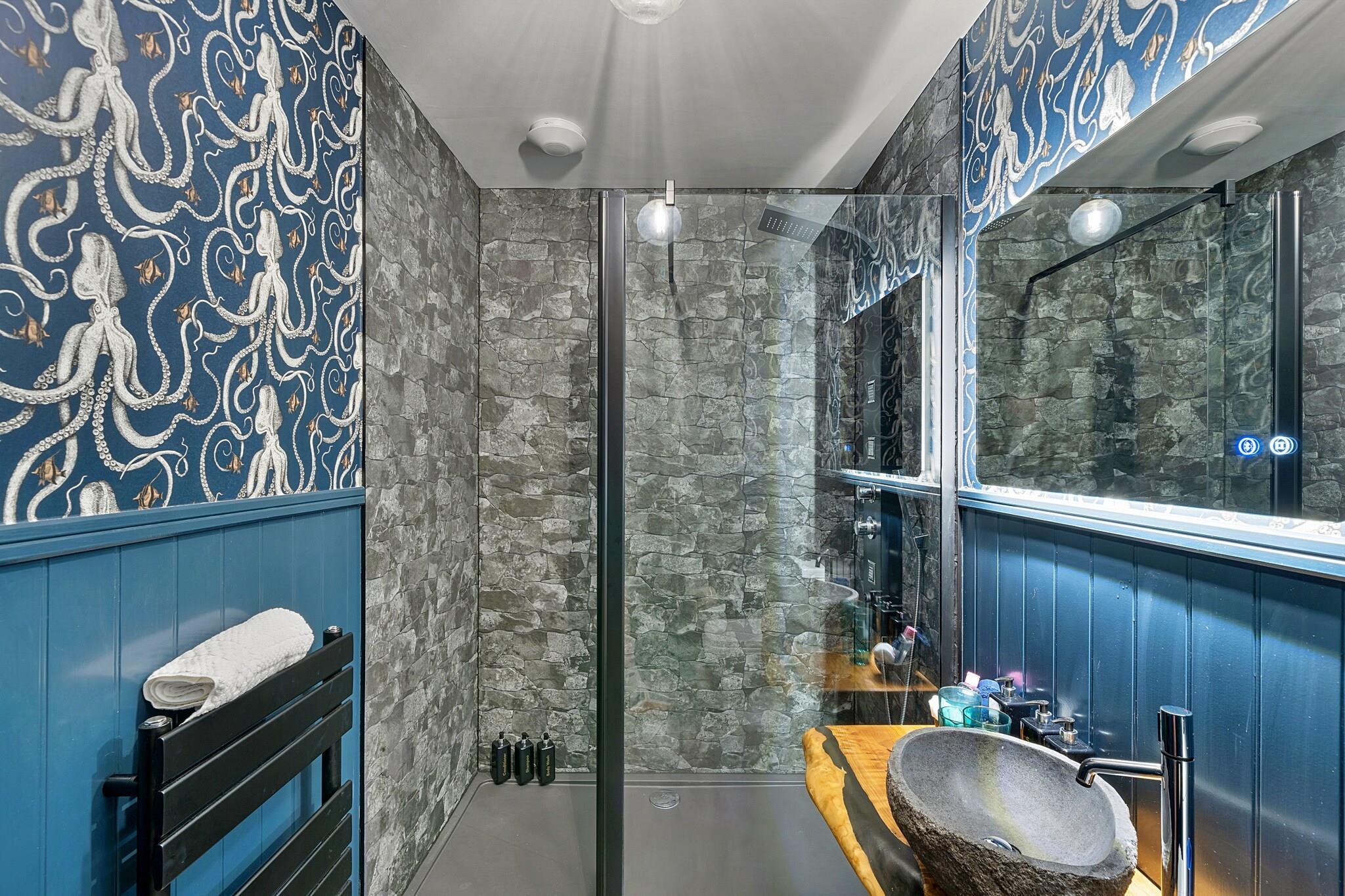 Willkommen zu Ihrem luxuriösen Rückzugsort im Towan House, einem atemberaubenden Kapellenumbau im pulsierenden Herzen von Newquay. Dieses exquisite Anwesen verbindet moderne Eleganz mit historischem Charme und ist damit der perfekte Rückzugsort für Familien, Paare und Gruppen, die einen unvergesslichen Kurzurlaub in Cornwall verbringen möchten. Im Inneren befinden sich drei geräumige Schlafzimmer im Erdgeschoss, die jeweils über einen eigenen Smart-TV verfügen und so für Komfort und Privatsphäre sorgen. Gönnen Sie sich schicke Badezimmer, darunter einen stilvollen Bereich mit einem maßgeschneiderten Waschbecken aus Flussfelsen und ein großzügiges Duschbad mit einer 1,6 Meter breiten Duschkabine und einem opulenten Onyx-Waschbecken. Steigen Sie die große Treppe hinauf, die mit einem maßgeschneiderten Kronleuchter geschmückt ist, und finden Sie eine geräumige, offene Lounge und eine voll ausgestattete Küche, ideal für Selbstversorger-Aufenthalte. Das vierte Schlafzimmer auf dieser Ebene bietet ein großzügiges gewölbtes Kopfteil und einen Smart-TV. Treten Sie nach draußen und entdecken Sie einen großen, privaten, umzäunten Terrassenbereich, der sich perfekt zum Entspannen im Freien eignet, komplett mit Gartenmöbeln und einem luxuriösen 7-Sitzer-Whirlpool zum Entspannen unter den Sternen. Nach nur 5 Gehminuten gelangen Sie zum Towan Beach, während Fistral Beach weniger als 1,6 km entfernt liegt und Ihnen einfachen Zugang zu Sandstränden und Spaß am Meer bietet. Genießen Sie die nahe gelegenen Annehmlichkeiten wie Restaurants, Bars und Geschäfte oder unternehmen Sie malerische Spaziergänge in Newquay und Crantock. Ihr Aufenthalt wird durch die im Preis inbegriffenen Strandtücher und Bademäntel noch angenehmer. Ein Reisebett und ein Hochstuhl sind auf Anfrage erhältlich. Mit einem privaten Parkplatz für ein Fahrzeug und einem Ladegerät für Elektrofahrzeuge vor Ort erfüllt Towan House alle Ihre Bedürfnisse. Entspannen Sie sich in vier gut ausgestatteten Schlafzimmern, zwei Super-Kingsize-Zip-and-Link-Schlafzimmern (umwandelbar in Zweibettzimmer) und zwei Kingsize-Zimmern.