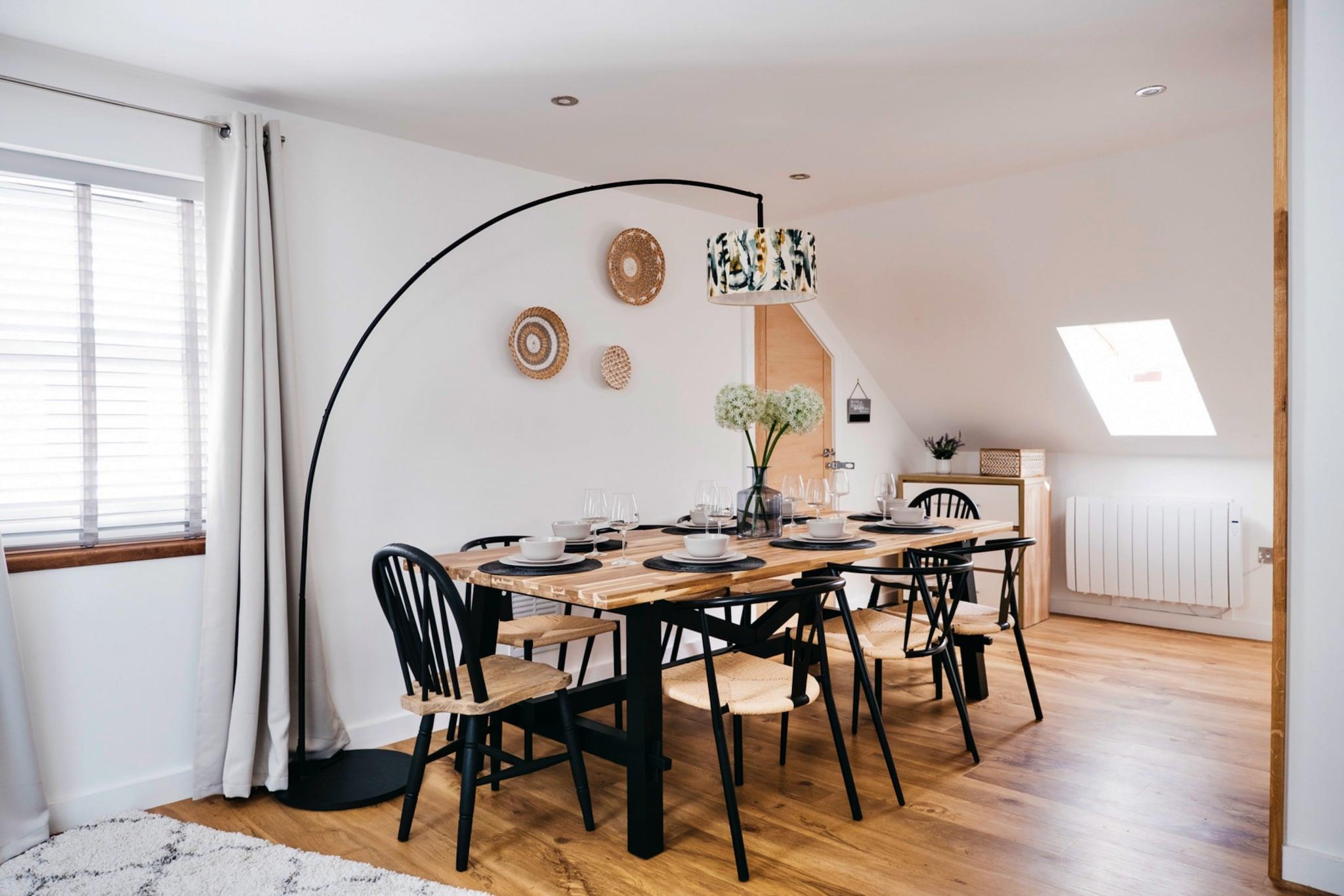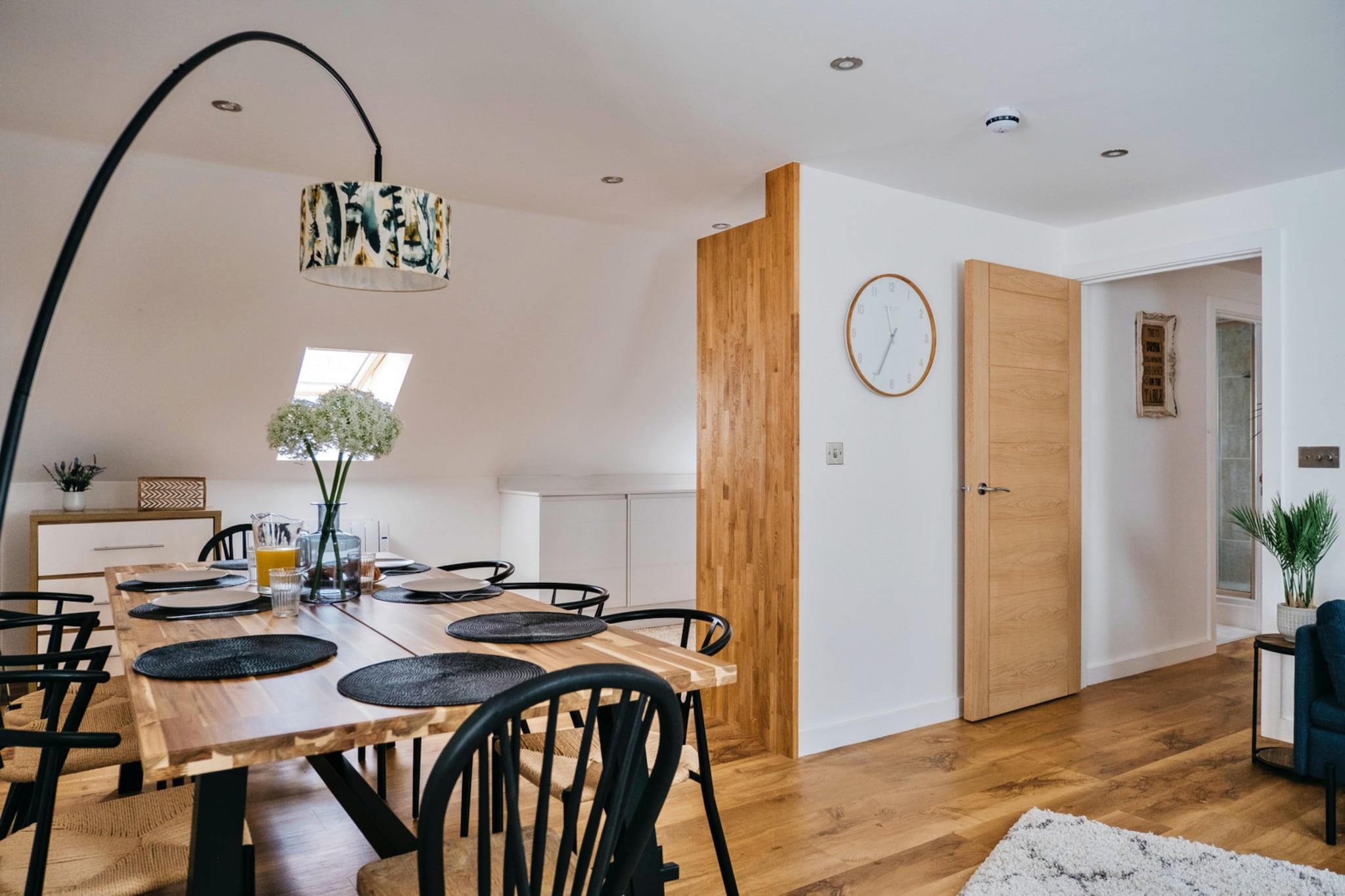 Dieses charmante Apartment bietet komfortable Unterkünfte mit vier Doppelzimmern, ideal für bis zu acht Gäste. Die Unterkunft ist haustierfreundlich und erlaubt gegen eine zusätzliche Gebühr die Mitnahme von bis zu zwei Hunden, sodass Ihre pelzigen Begleiter an Ihrem Urlaub teilhaben können. Der offene Wohnbereich verfügt über ein geräumiges Sofa und einen Smart-TV zum Entspannen nach einem erlebnisreichen Tag. Ein privater Balkon bietet eine malerische Aussicht, während ein abschließbarer Lagerschuppen für Outdoor-Ausrüstung wie Fahrräder oder Surfbretter zur Verfügung steht. Zusätzliche Dienstleistungen wie Babyhochstühle sind vorhanden und die gesamte Bettwäsche, Handtücher und Endreinigung sind im Aufenthalt inbegriffen. Für zusätzlichen Komfort stehen den Gästen außerdem kostenfreies Highspeed-Internet und ausreichend Parkplätze zur Verfügung. Das Apartment befindet sich in bester Lage und ist nur einen kurzen Spaziergang von den wunderschönen Stränden von Newquay entfernt, die für ihr Surfen und ihren goldenen Sand bekannt sind. In der Nähe können Gäste die pulsierende Stadt mit einer Vielzahl von Cafés, Restaurants und unabhängigen Geschäften erkunden. Lokale Attraktionen wie das Blue Reef Aquarium, der Newquay Zoo und das Seal Sanctuary bieten Spaß für Familien, während das Eden Project nur eine kurze Autofahrt entfernt ist. Die öffentlichen Verkehrsmittel sind leicht zu erreichen, Bahn- und Bushaltestellen sind zu Fuß erreichbar und der nächste Flughafen ist nur 20 Autominuten entfernt. Das Apartment verfügt über eine voll ausgestattete Küche mit modernen Geräten, darunter ein voll ausgestatteter Backofen, ein Herd, ein Kühl-/Gefrierschrank, ein Geschirrspüler und eine Waschmaschine. Die Küche bietet alles, was Sie für die Zubereitung von Mahlzeiten während Ihres Aufenthalts benötigen. Zwei Badezimmer, darunter ein Ensuite-Badezimmer zum Hauptschlafzimmer, bieten viel Platz für Gäste. Das Anwesen verfügt außerdem über einen geräumigen Essbereich mit Platz für acht Personen, der sich perfekt für Familienessen eignet.