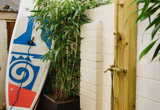 Outside, there is an excellent enclosed rear garden space which is part decking and part patio. There is a custom-built BBQ area for ideal relaxation on sunny evenings, and the added bonus of an outdoor hot water shower, perfect for rinsing off the sand and saltwater. There is also plenty of space to hang wetsuits, store surfboards or bikes and any other your beach equipment outside securely. At the front of the house, there is a little paved terrace with a bistro table and chairs, to make the most of the sun in the afternoon.
