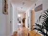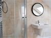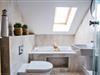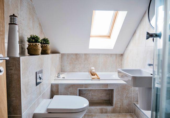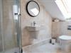 The main bathroom is fully tiled for a marble effect finish, and has a full-size bath, separate corner shower enclosure, along with heated towel rail, WC and wash basin.