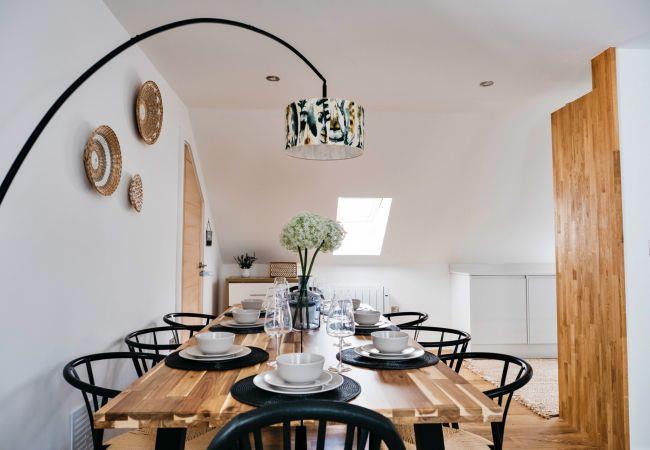 Inside the property, the styling is fresh and bright, and the open plan kitchen, living and dining area is the ideal family space in which to kick back and relax after a long day of adventuring and enjoying the fresh sea air.