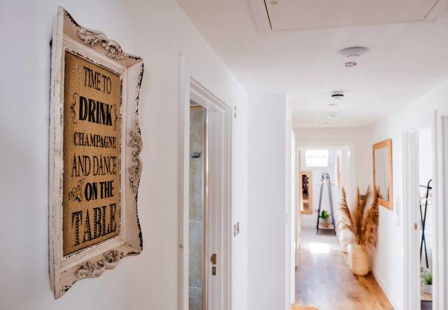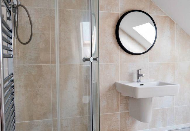Along the hall, there are four double bedrooms, all beautifully dressed, with plenty of hanging space and storage in each. There is an ensuite bathroom to the master, offering a spacious corner shower enclosure, heated towel rail, close-coupled WC and wash basin. All the bedrooms have luxury linens and towels are provided too.