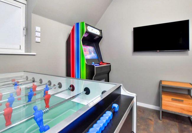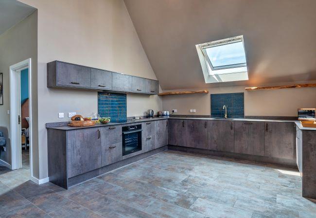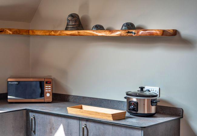 Die Küche ist ausgestattet mit Kühlschrank, Mikrowelle, Backofen, Gefrierschrank, Waschmaschine, Trockner, Spülmaschine, Geschirr/Besteck, Kochutensilien, Toaster und Wasserkocher.