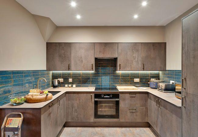 Die Küche ist ausgestattet mit Kühlschrank, Mikrowelle, Backofen, Gefrierschrank, Waschmaschine, Trockner, Spülmaschine, Geschirr/Besteck, Kochutensilien, Toaster und Wasserkocher.