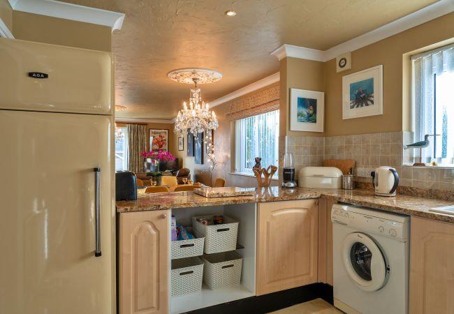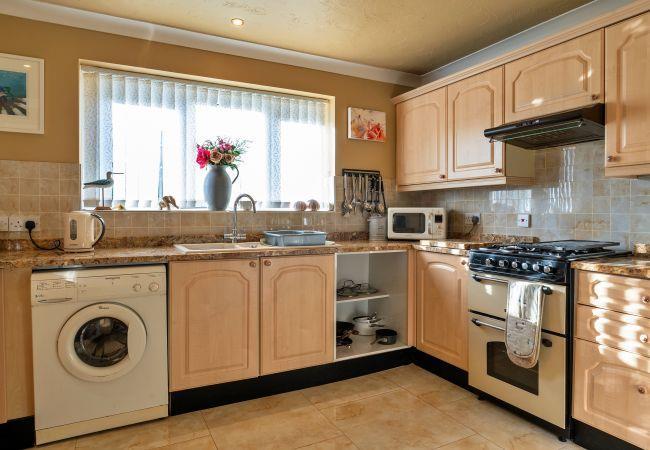 Die Küche ist ausgestattet mit Kühlschrank, Mikrowelle, Backofen, Gefrierschrank, Waschmaschine, Geschirr/Besteck, Kochutensilien, Toaster und Wasserkocher.