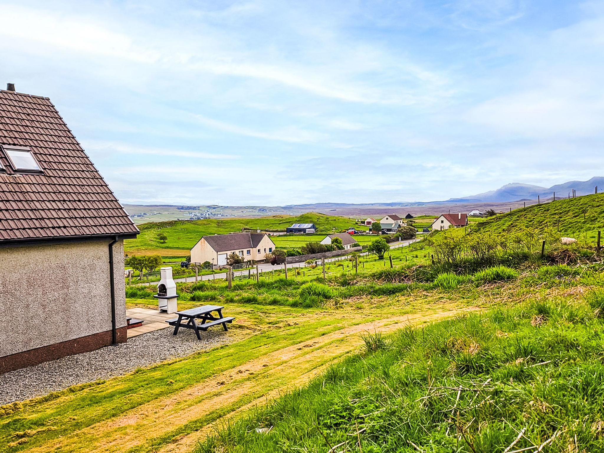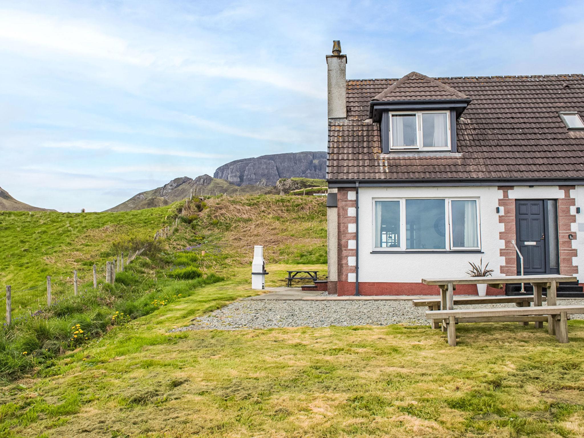 Gemütliches, freistehendes, komfortables Haus "Quiraing Cottage". Im Bezirk Staffin, 2 m vom Meer. Zur Alleinbenutzung: grosser Garten. Im Hause: Wireless LAN, Zentralheizung, Wäscherei. Parkplatz (für 2 Autos) beim Haus. Einkaufsgeschäft 2 m, Lebensmittelgeschäft 2 km, Restaurant 16 km, Bar 15 km, Bushaltestelle "road end" 500 m. Nahe gelegene Sehenswürdigkeiten: The Quiraing, 5 km, Old man of Storr 22 km, Lealt Falls 12 km. Bitte beachten: Fahrzeug empfohlen. Babyausstattung auf Anfrage.