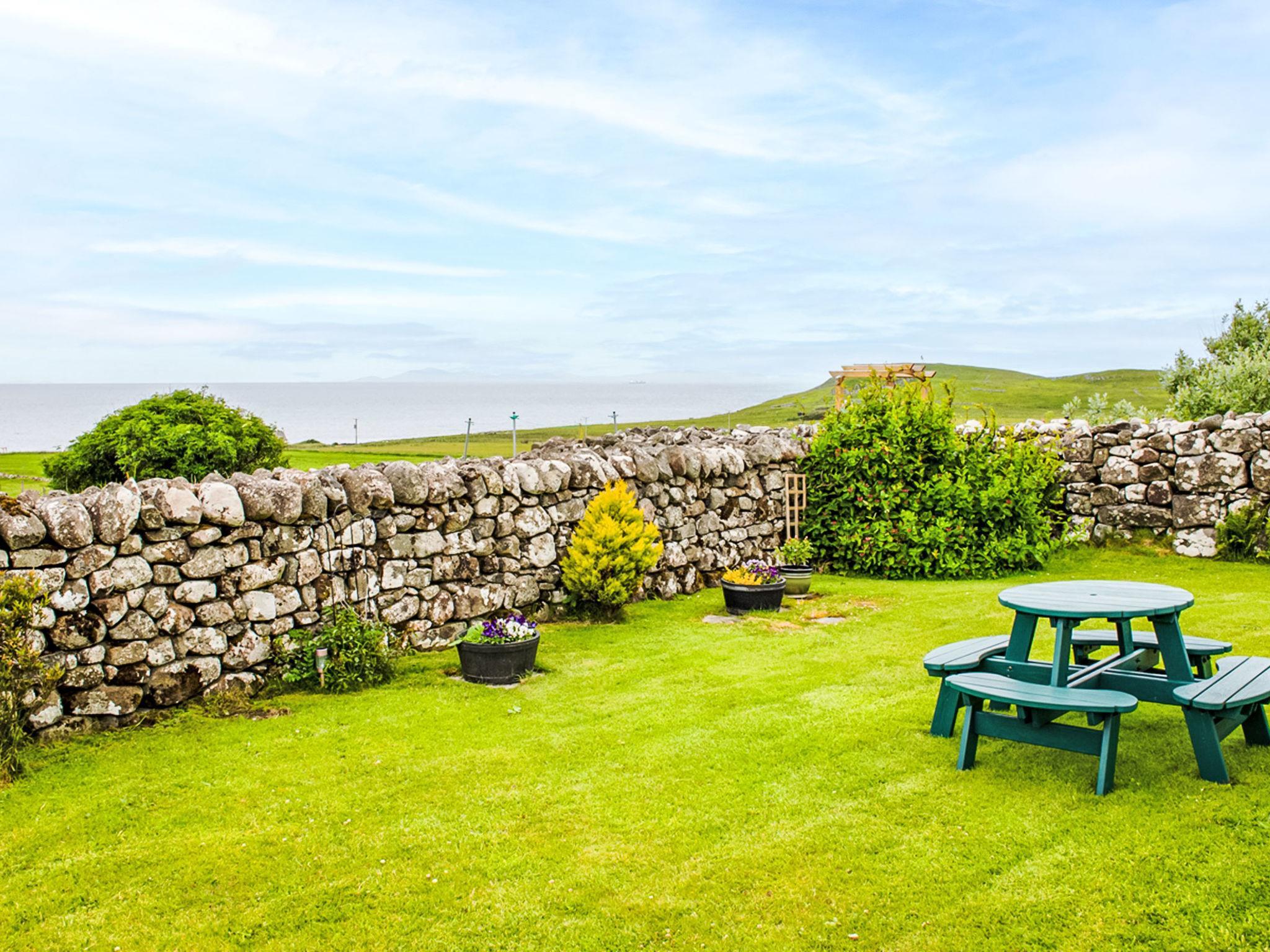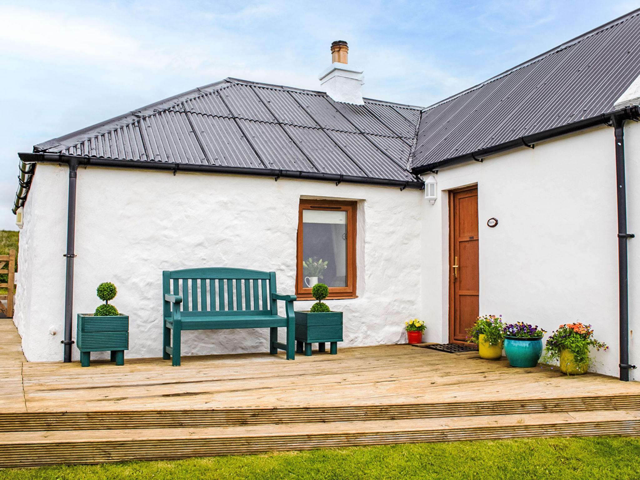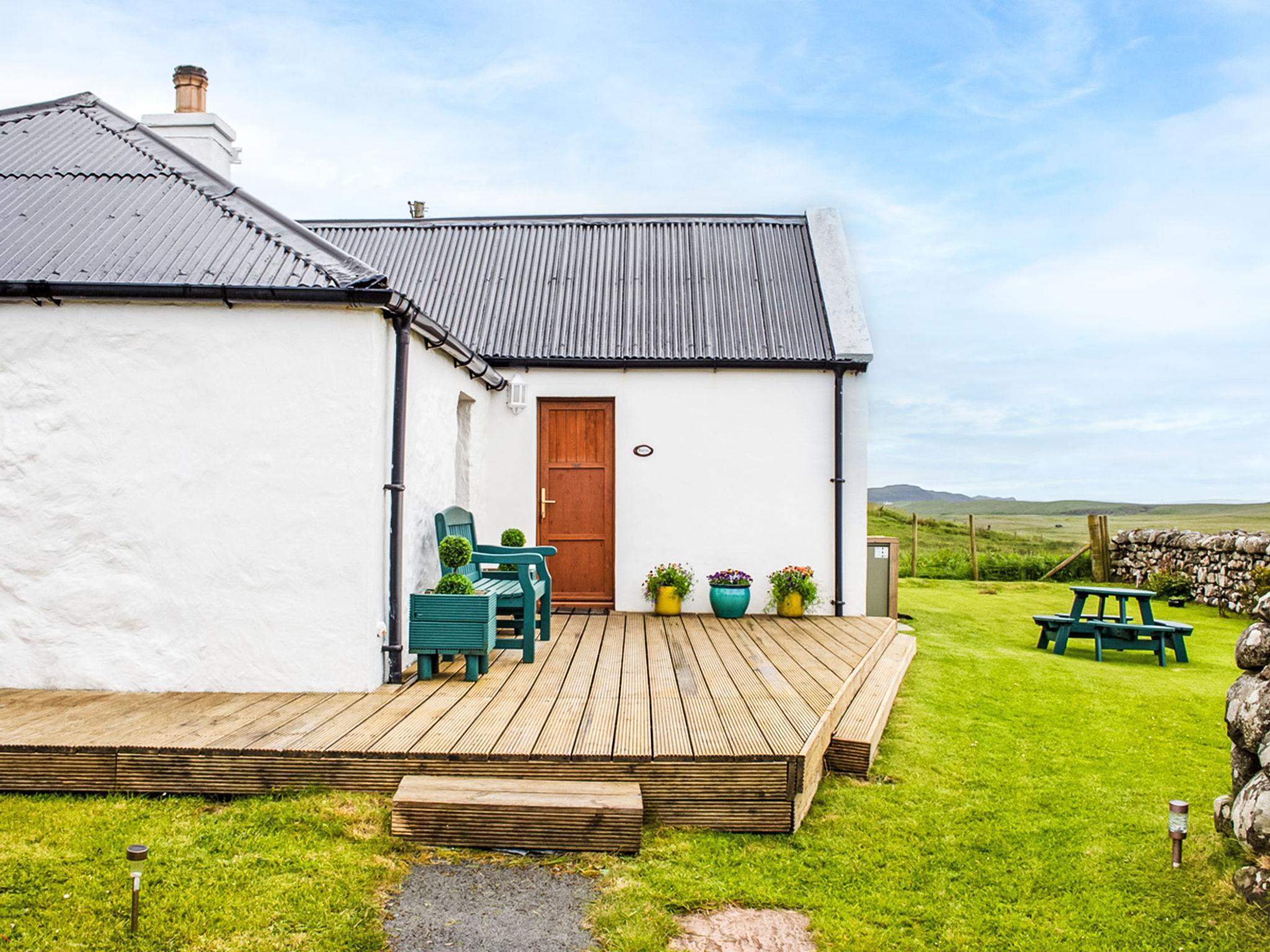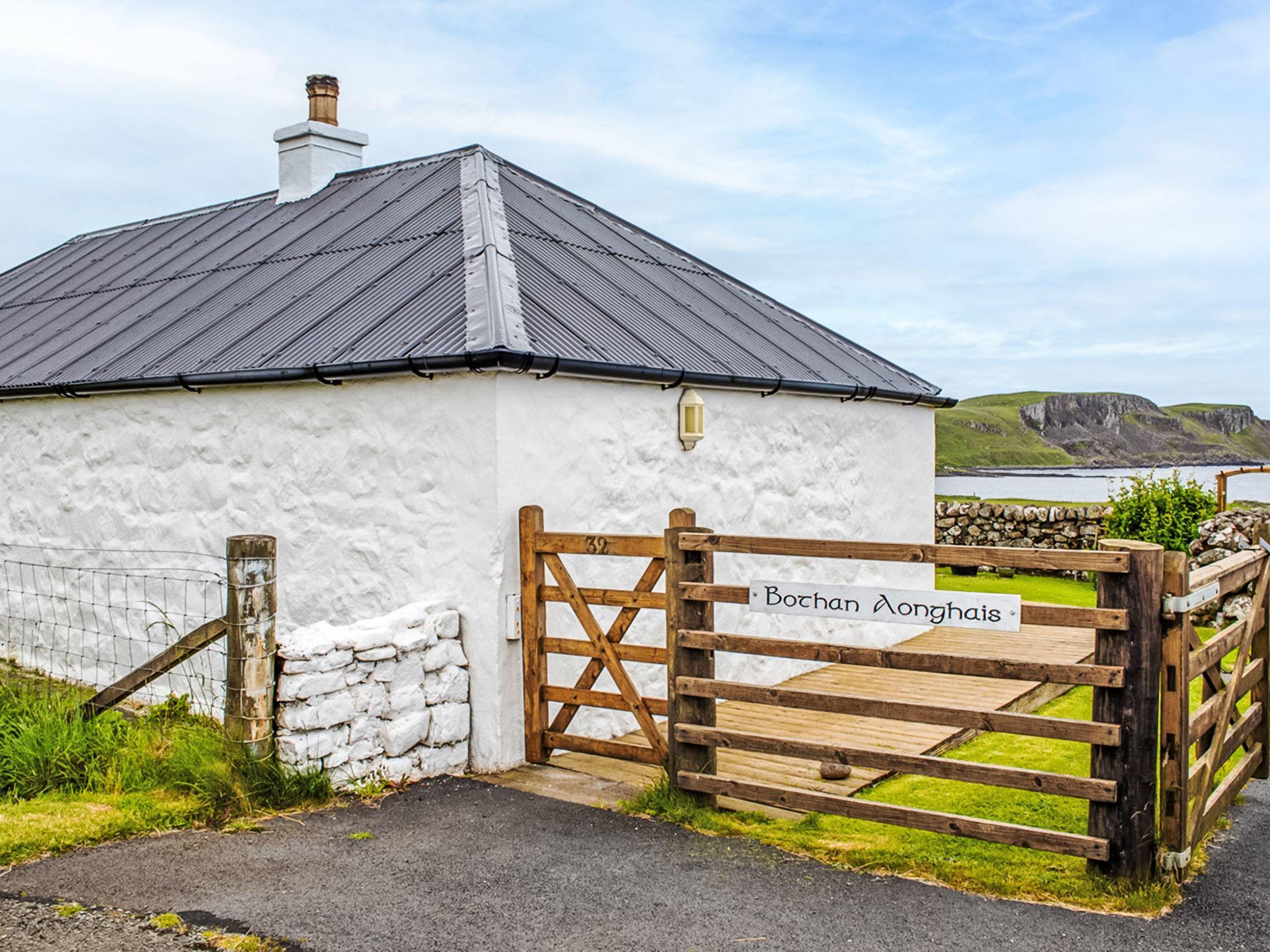 Sehr gemütliches, komfortables Landhaus "Bothan Aonghais". Im Ortsteil Kilmuir, alleinstehende, ruhige, sonnige Lage, 1 km vom Meer. Zur Alleinbenutzung: Garten (eingezäunt). Im Hause: Internetzugang, Wireless LAN, Zentralheizung, Wäscherei, Waschmaschine. Parkplatz beim Haus. Einkaufsgeschäft 10 km, Supermarkt 17 km, Restaurant 4 km, Café 3 km, Bushaltestelle "Kilmuir, Heribusta Road End" 1 m. Nahe gelegene Sehenswürdigkeiten: The Fairy Glen 14 km, The museum of island life 3 km, The Quiraing 23 km, Jurassic Dinosaurs Footprints at An Corr 20 km, An Corran Beach 20 km, Flora Macdonald’s grave 3 km. Bitte beachten: Fahrzeug empfohlen.