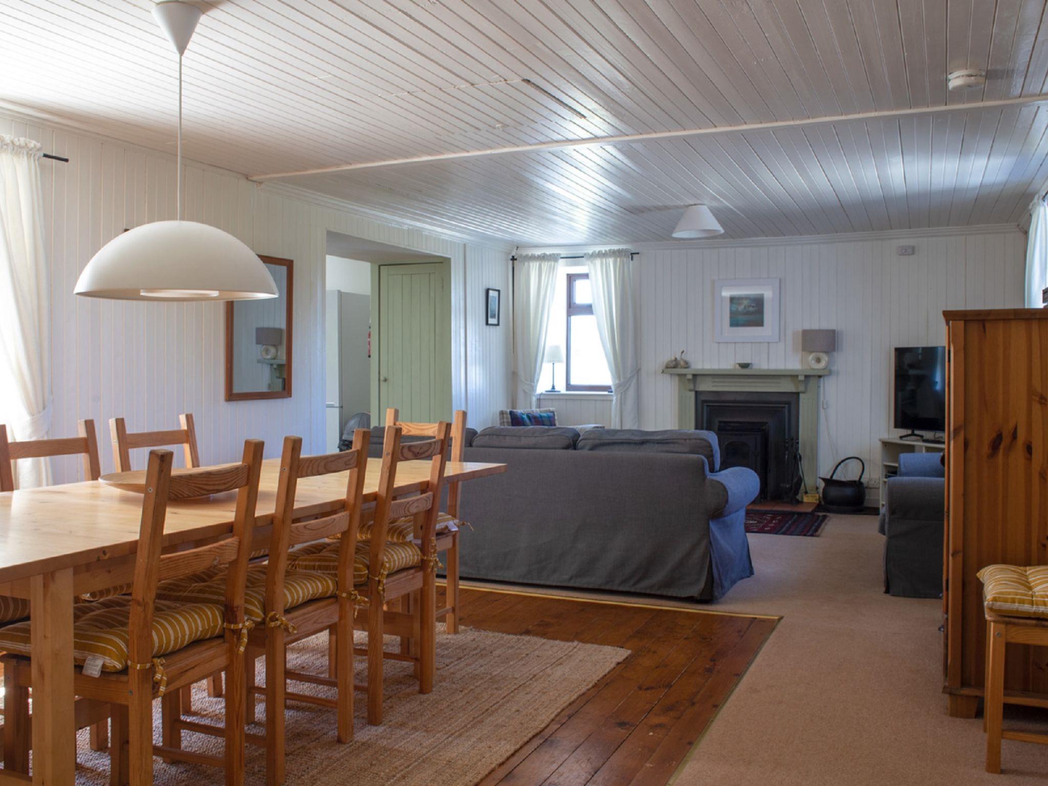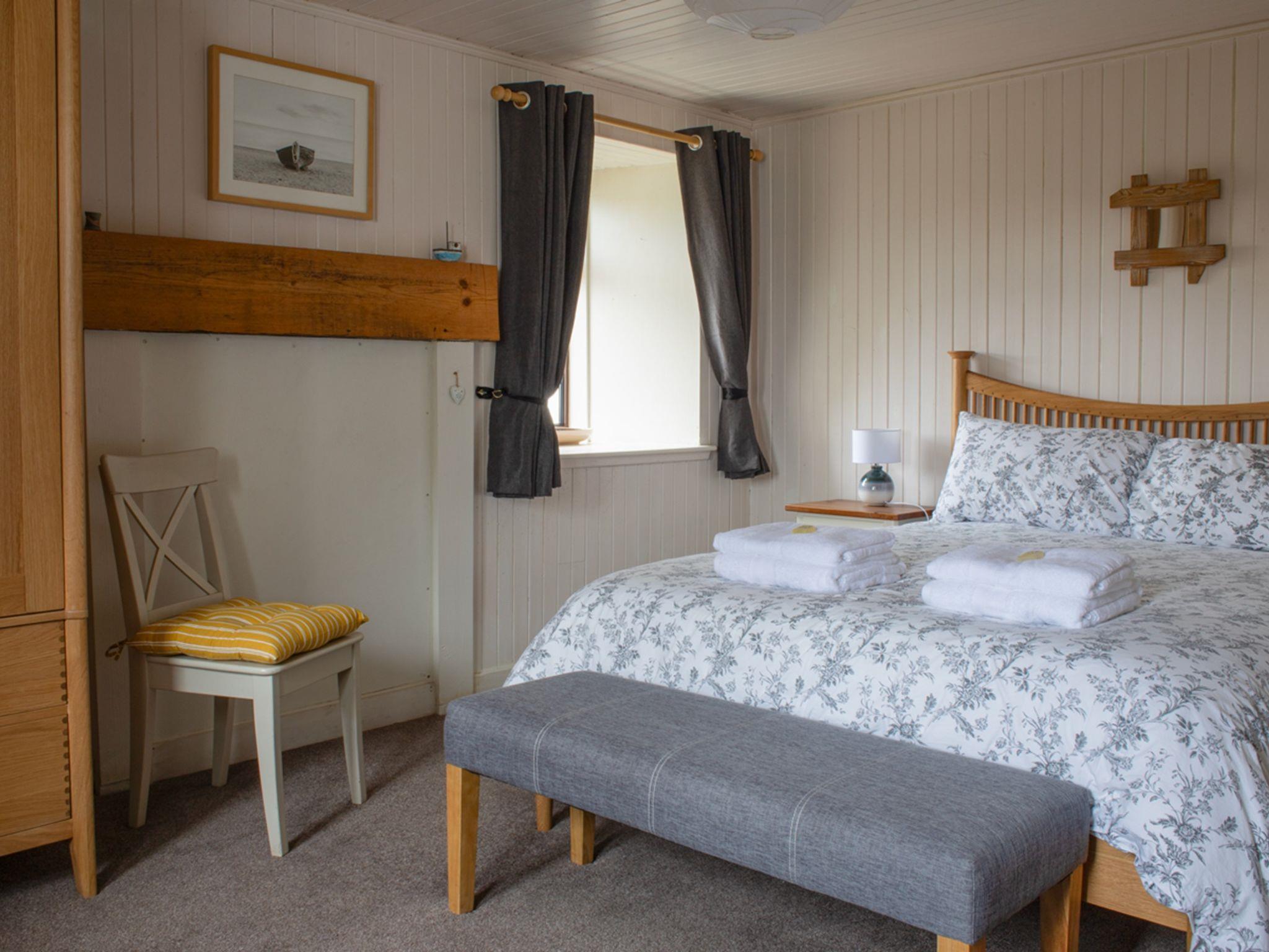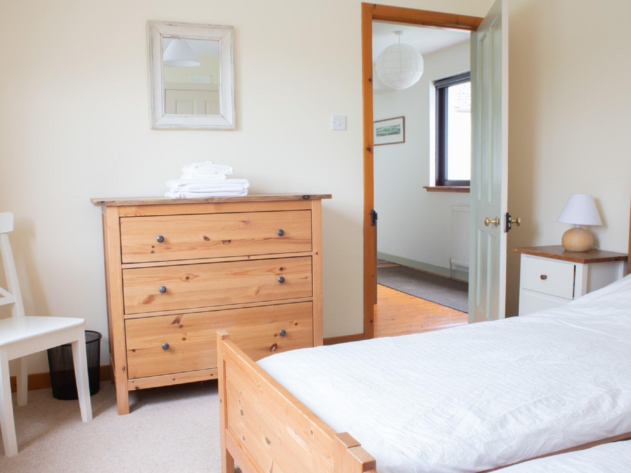 "Ploughman's Cottage", 4-Zimmer-Landhaus 103 m2, im Erdgeschoss. Modern und geschmackvoll eingerichtet: Eingang. Offenes Wohn-/Esszimmer mit Esstisch, TV und Sat-TV (Flachbildschirm), Radio, CD, DVD und Holzofen. 1 Doppelzimmer mit 1 Doppelbett. 2 Zimmer, jedes Zimmer mit 2 Betten. Offene Küche (4 Kochplatten, Backofen, Geschirrspüler, Mikrowelle, Tiefkühler) mit kleinem Esstisch. Sep. WC, Bad/Dusche/WC. Heizung. Kleine Terrasse, Garten. Terrassenmöbel. Sehr schöne Sicht auf das Meer und die Landschaft. Zur Verfügung: Waschmaschine, Wäschetrockner, Kinderhochstuhl, Babybett bis 2 Jahre, Haartrockner. Internet (WLAN, gratis). Parkplatz (2 Autos) beim Haus. Bitte beachten: geeignet für Familien. Nichtraucher-Haus. Maximal 1 Haustier/Hund erlaubt. TV nur EN.