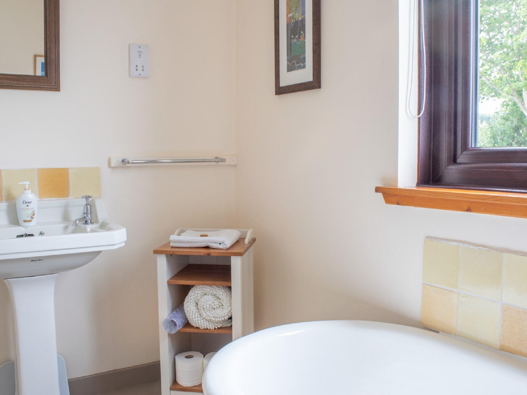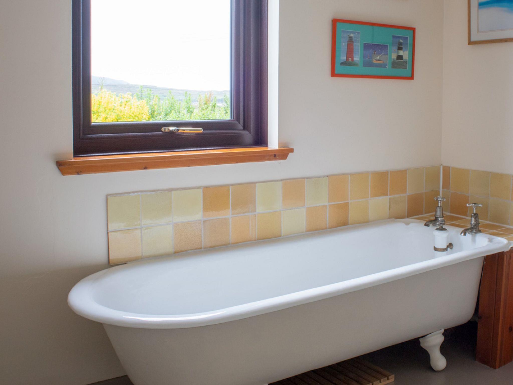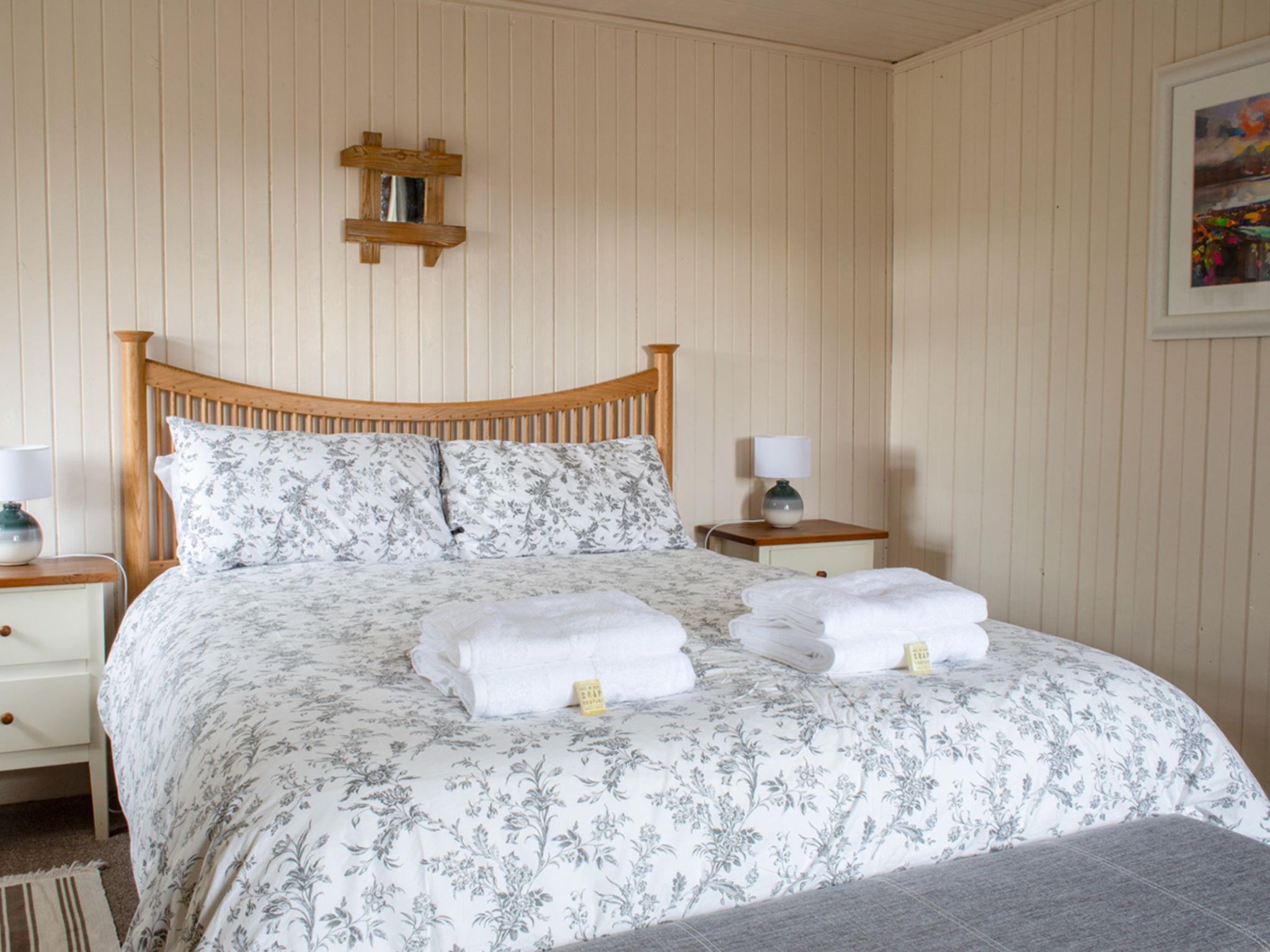 "Ploughman's Cottage", 4-Zimmer-Landhaus 103 m2, im Erdgeschoss. Modern und geschmackvoll eingerichtet: Eingang. Offenes Wohn-/Esszimmer mit Esstisch, TV und Sat-TV (Flachbildschirm), Radio, CD, DVD und Holzofen. 1 Doppelzimmer mit 1 Doppelbett. 2 Zimmer, jedes Zimmer mit 2 Betten. Offene Küche (4 Kochplatten, Backofen, Geschirrspüler, Mikrowelle, Tiefkühler) mit kleinem Esstisch. Sep. WC, Bad/Dusche/WC. Heizung. Kleine Terrasse, Garten. Terrassenmöbel. Sehr schöne Sicht auf das Meer und die Landschaft. Zur Verfügung: Waschmaschine, Wäschetrockner, Kinderhochstuhl, Babybett bis 2 Jahre, Haartrockner. Internet (WLAN, gratis). Parkplatz (2 Autos) beim Haus. Bitte beachten: geeignet für Familien. Nichtraucher-Haus. Maximal 1 Haustier/Hund erlaubt. TV nur EN.