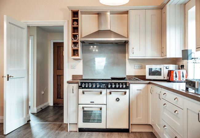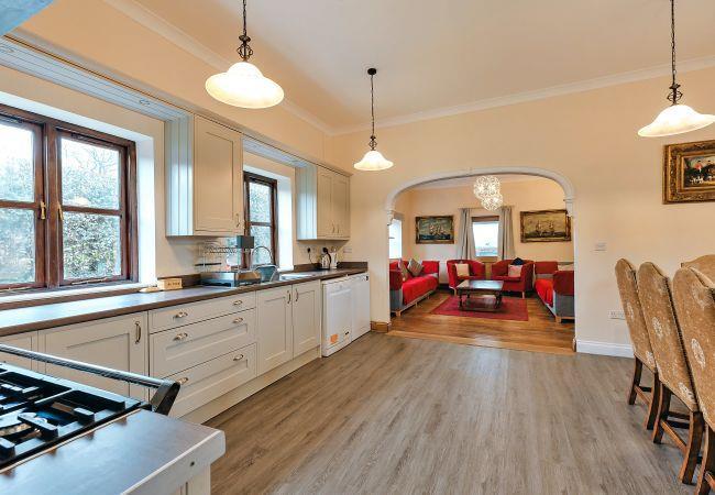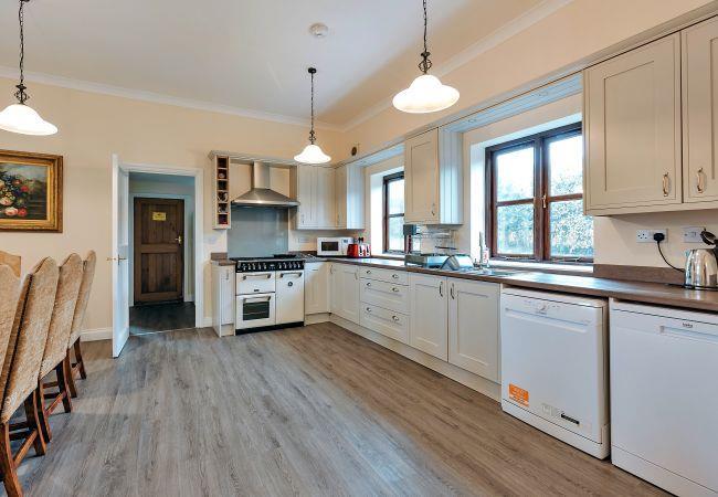 Die hübsche und voll ausgestatteter Küche Unterkunft mit 180 m², mit Blick auf den Garten.