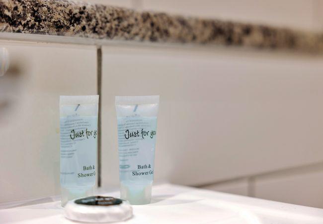 Die Küche ist ausgestattet mit Kühlschrank, Mikrowelle, Backofen, Gefrierschrank, Waschmaschine, Trockner, Spülmaschine, Geschirr/Besteck, Kochutensilien, Toaster und Wasserkocher.