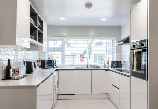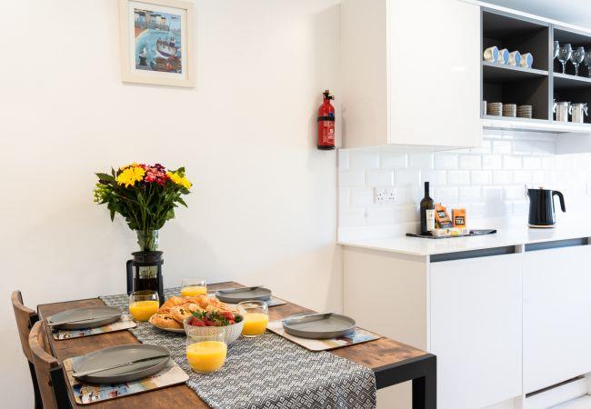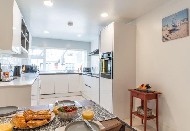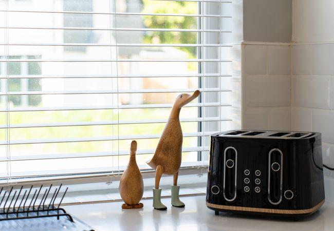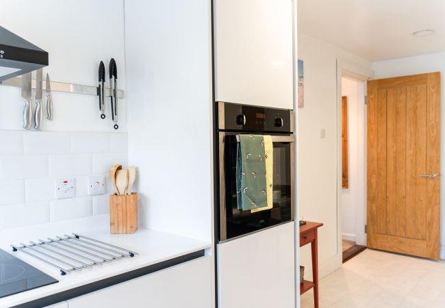 Entering through the front porch, there is plenty of room for coats, shoes, buckets and spades and beach gear. The kitchen is bright, modern and chic, with a dining table to seat four and integrated appliances including fridge, freezer, dishwasher and oven. There is a ceramic electric hob and plenty of worktop space, along with all the kitchenware you'll need for your slow-paced holiday breakfast!