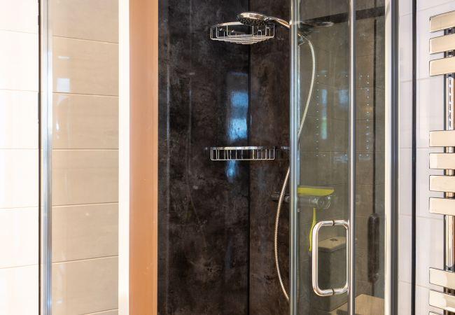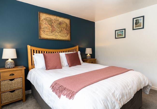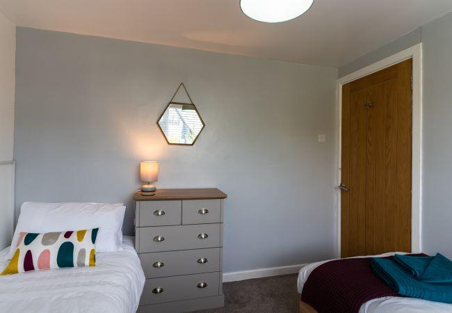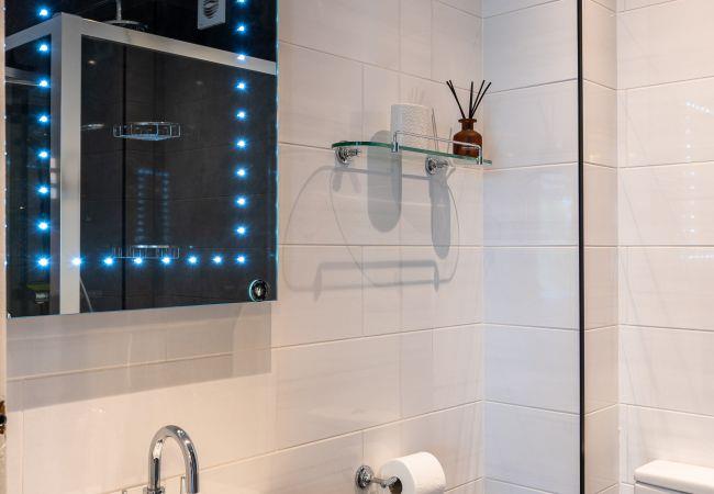 The bedrooms are light and airy, with the master having a king-size bed and the second room having two singles. The bathroom is fully tiled and contemporary in style, with a shower enclosure with rainfall showerhead, heated towel rail, basin and close-coupled toilet. There is a bed-rail available for use if needed.