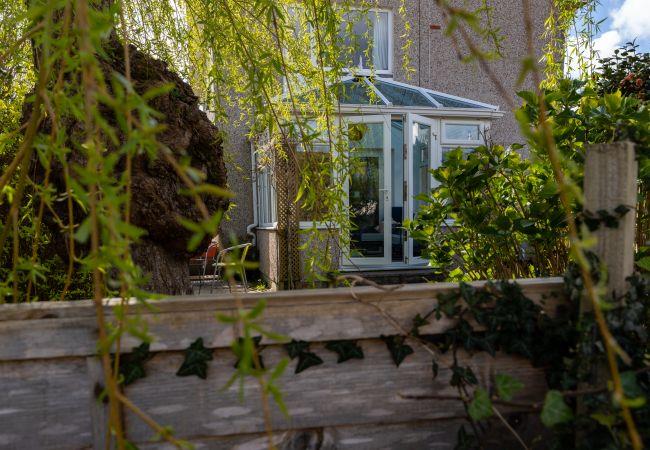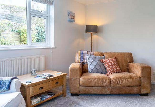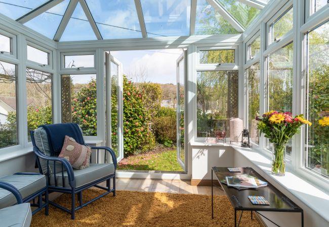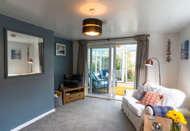 The living room is spacious and light with two sofas, smart TV with freesat and streaming platforms, and double patio doors leading out to the conservatory. This sunny room overlooks the garden and makes a great space for morning coffees, afternoon naps, or poring over the OS map to find your way to that hidden beach.