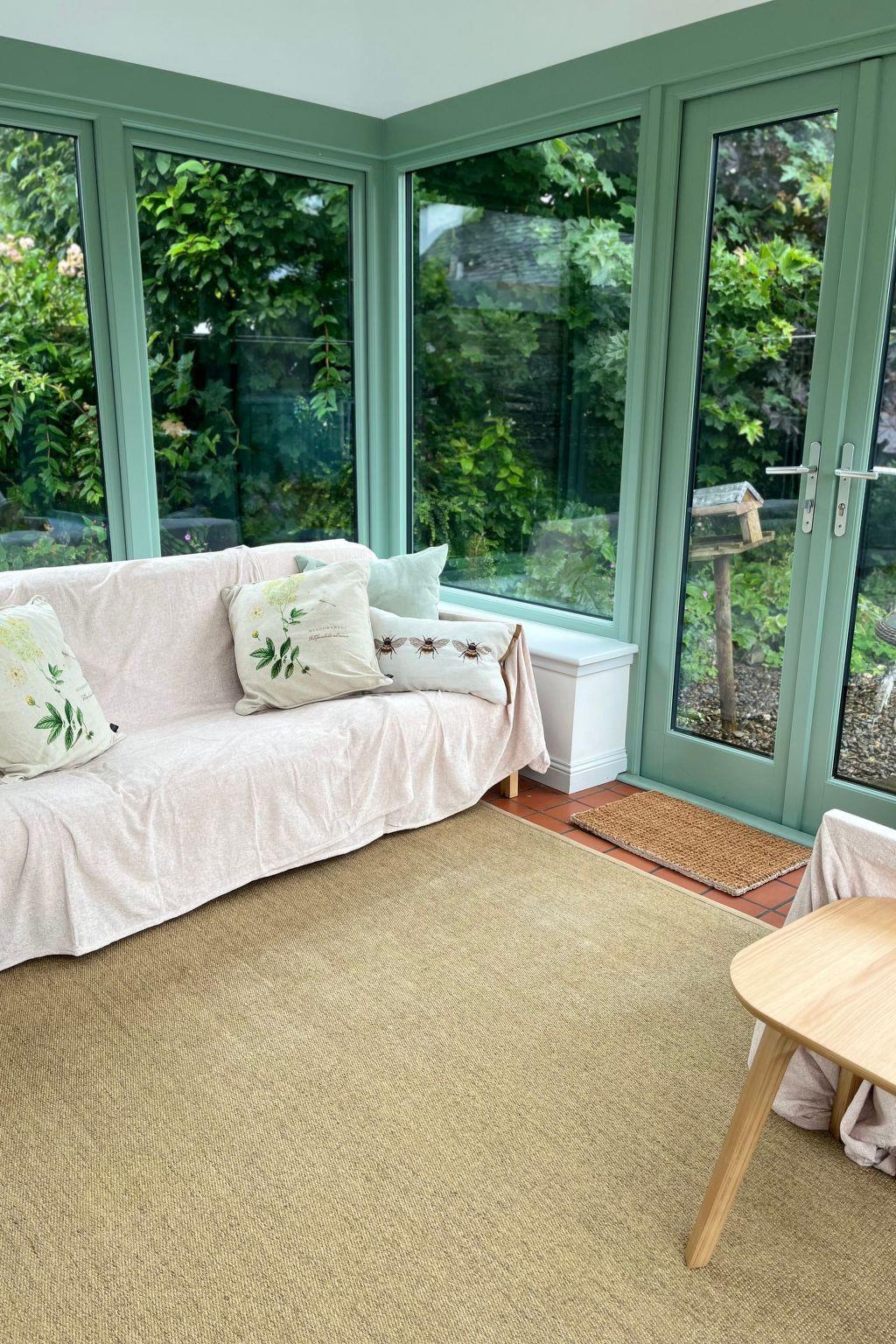Wintergarten mit Tischfußballtisch und Blick auf den Garten