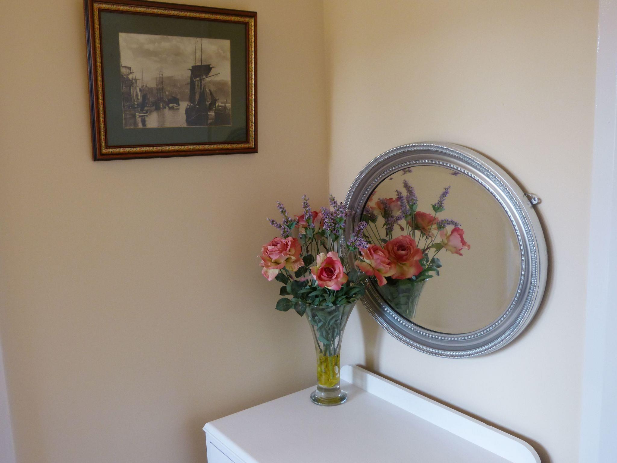 Es gibt zwei Etagen mit einem Doppel- und einem Einzelzimmer und ein Badezimmer im ersten Stock. Das Doppelbettzimmer verfügt über ein Himmelbett, einen Kleiderschrank und eine Kommode, das Einzelzimmer hat ein antikes Einzelbett, Einbauschrank und eine Kommode. Das Badezimmer ist mit einer Badewanne mit Dusche, WC und Waschbecken ausgestattet.Das offene Erdgeschoss verfügt über ein Dreisitzer-Sofa, offenes Kamin, Flachbild-TV, DVD- und CD-Player, einen Esstisch und Stühlen sowie eine voll ausgestattete Küche mit Elektroherd, Wasserkocher, Toaster, Kaffeemaschine, Kühlschrank mit Gefrierfach und Waschmaschine.