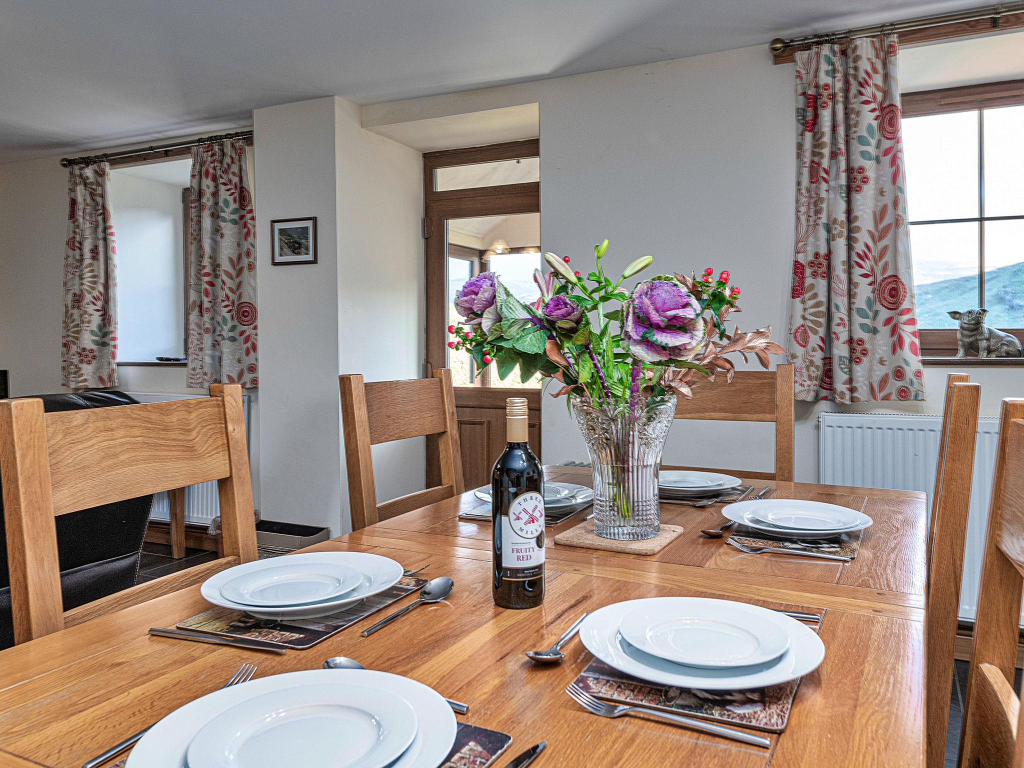 "Llechwedd Mawr", 4-Zimmer-Haus 80 m2. Objekt geeignet für 6 Erwachsene. Wohnzimmer mit offenem Kamin und TV. 1 Zimmer mit 1 Doppelbett. 1 Zimmer mit 1 Doppelbett. 1 Zimmer mit 1 x 2 Etagenbetten. Küche (Backofen, Geschirrspüler, Toaster, Wasserkocher, Mikrowelle, Tiefkühler). Bad/WC, Dusche/WC. Terrasse. Gartengrill. Zur Verfügung: Waschmaschine. Internet (WLAN, gratis). Parkplatz (2 Autos). Bitte beachten: Nichtraucher-Unterkunft. 1 Haustier/Hund erlaubt.