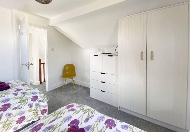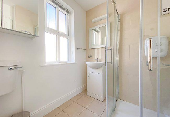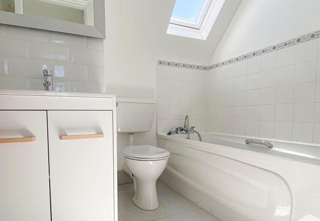 - Family bathroom with WC, hand basin and bath with overhead shower