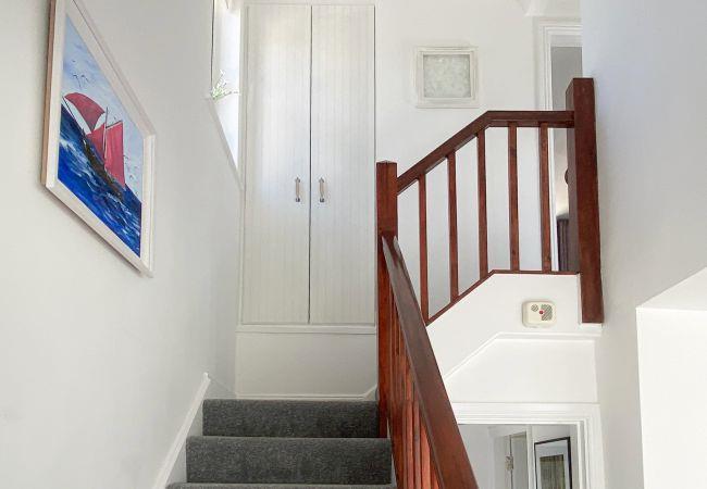 Washing machine & dryer are located beneath the stairs and accessible from the hallway.