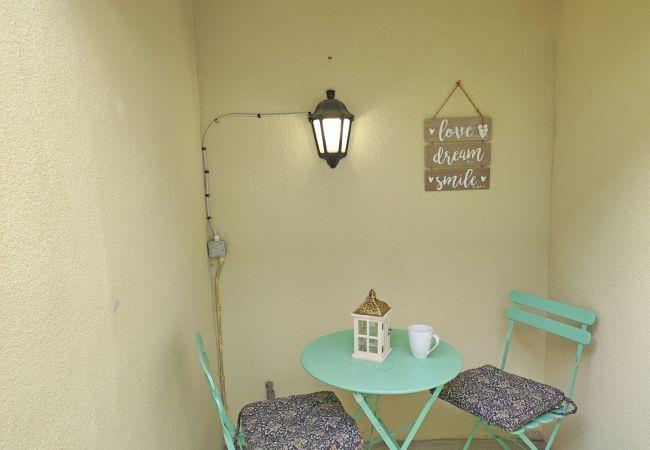 Outside this pretty holiday home is a courtyard garden with furniture provided.