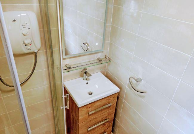 - Bathroom with separate shower cubicle, hand basin and WC