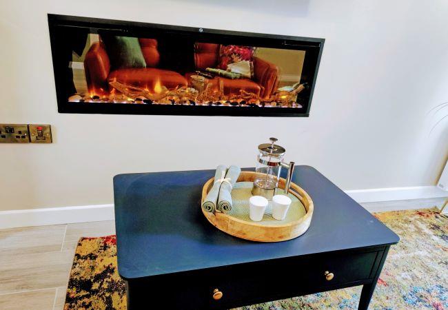 - Living area with cosy electric fire