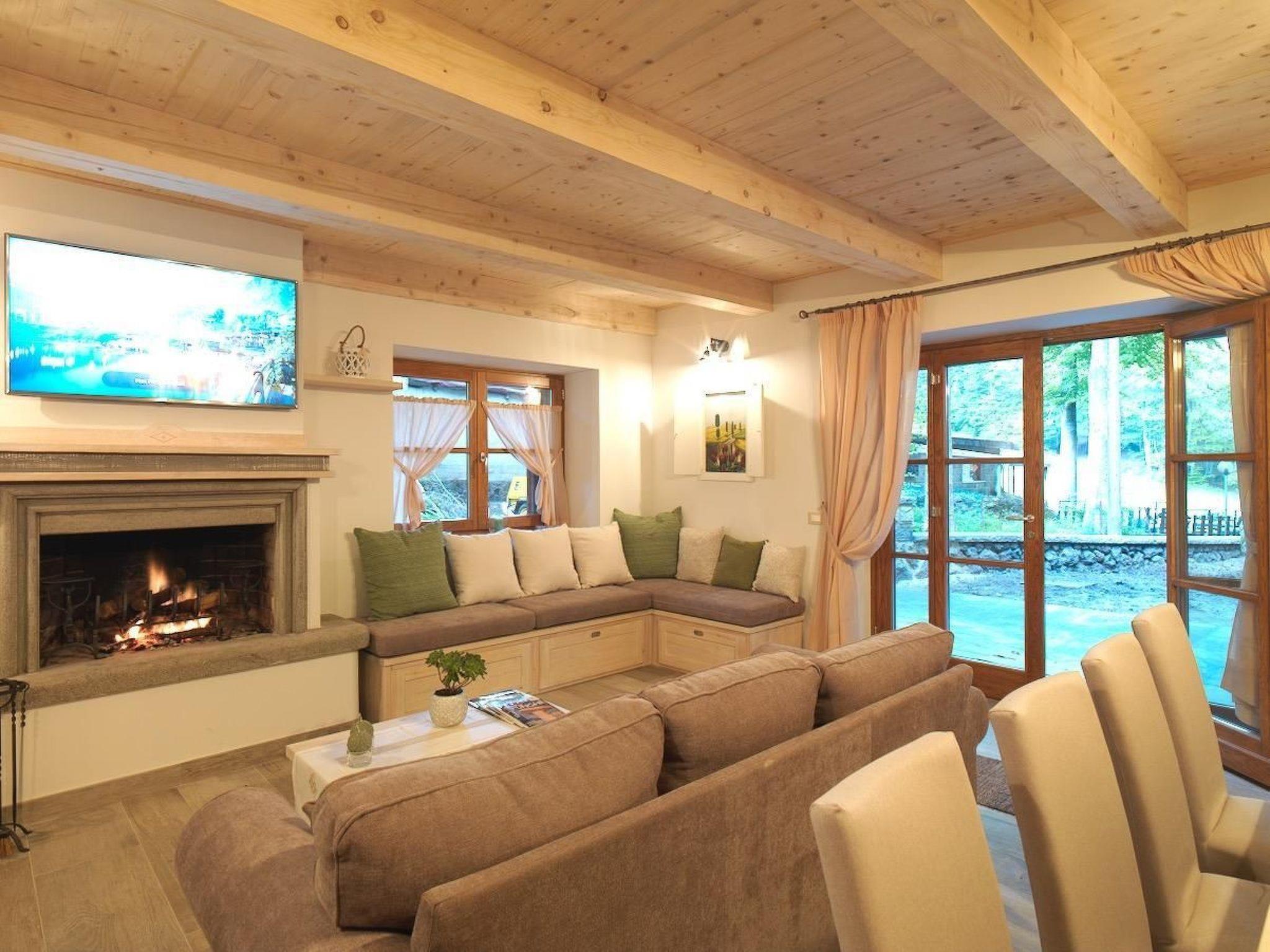 Ausstattung des Wohnzimmers: Wohnzimmer mit Kamin, Loungesofa, großem Tisch für gemütliche Abendessen, schickem LED-Satelliten-TV, Dolby-Surround-Sound und DVD, Bücher und Spiele