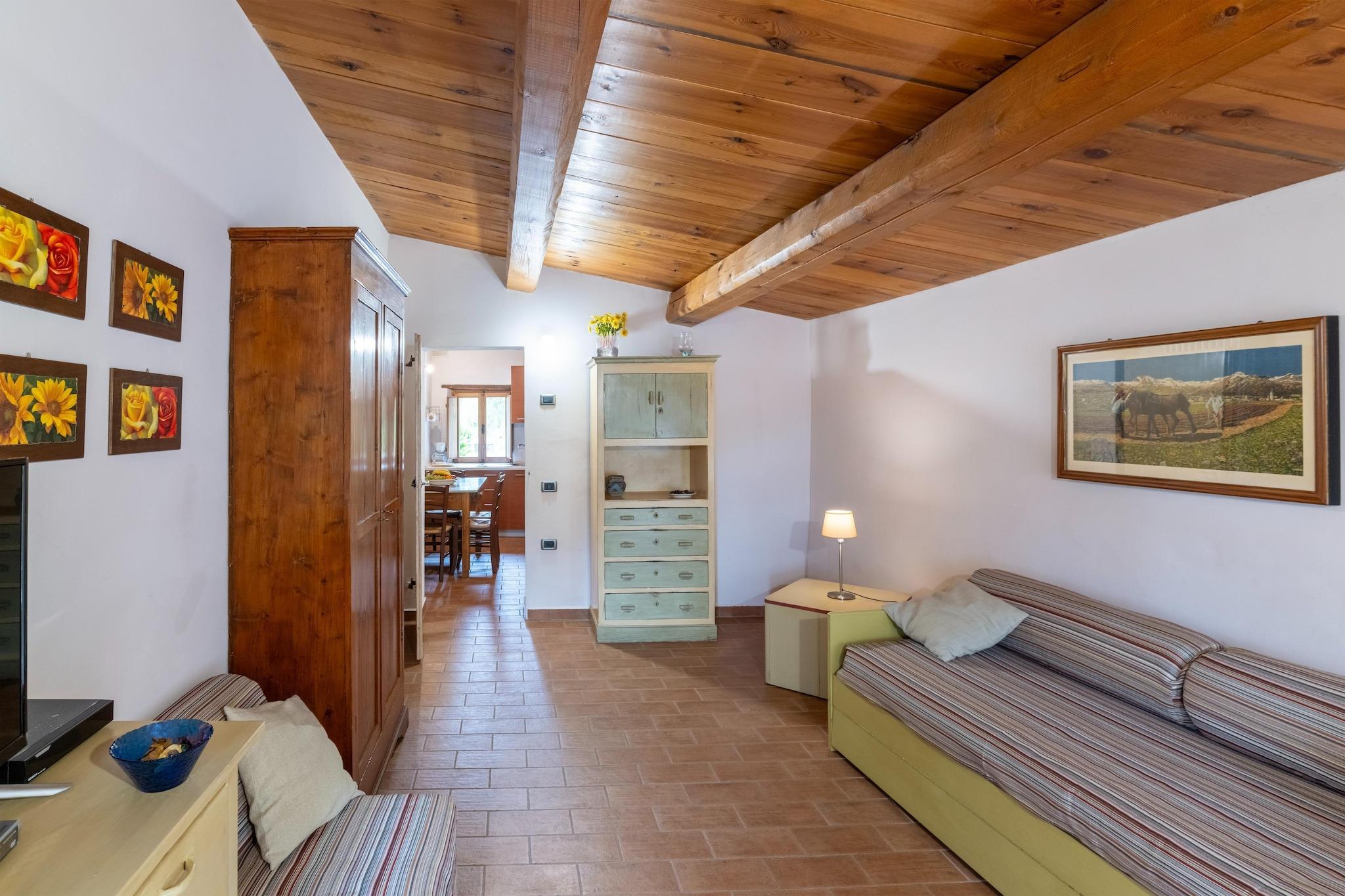 Entfliehen Sie dem Alltag in dieses charmante Apartment in einem authentischen Agriturismo im Herzen des Naturschutzgebiets Furlo. Dieses 1-Zimmer-Apartment ist ideal für eine kleine Familie und bietet ein ruhiges Urlaubserlebnis inmitten der Natur. Genießen Sie die Ruhe der umliegenden Landschaft und den Komfort eines gepflegten Salzwasserpools mit Whirlpool. Das Apartment ist Teil eines Bauernhauses mit drei Wohneinheiten. Im Inneren finden Sie ein gemütliches Wohnzimmer mit Sofa und Ausziehbett, eine voll ausgestattete Küche mit Essbereich und ein modernes Badezimmer. Den Gästen stehen ein umzäunter Garten, ein gemeinschaftlicher Fitnessbereich, eine Bibliothek und Wäschemöglichkeiten zur Verfügung. Kinderausstattung wie Kinderbett und Hochstuhl sind vorhanden, und Haustiere sind ebenfalls willkommen. Für Freizeitaktivitäten im Freien stehen eine Terrasse, ein Grill, Tischfußball und Liegestühle am Pool zur Verfügung. Nur 15 Autominuten von Acqualagna entfernt, ist diese Gegend für ihre Trüffelküche und Boutiquen bekannt. In 40 Minuten erreichen Sie die Adriaküste für Strandvergnügen oder erkunden die umliegenden Naturpfade und kulturellen Sehenswürdigkeiten. Dies ist ein wunderbarer Ausgangspunkt, um die Schönheit und die Aromen der Region Marken zu entdecken.