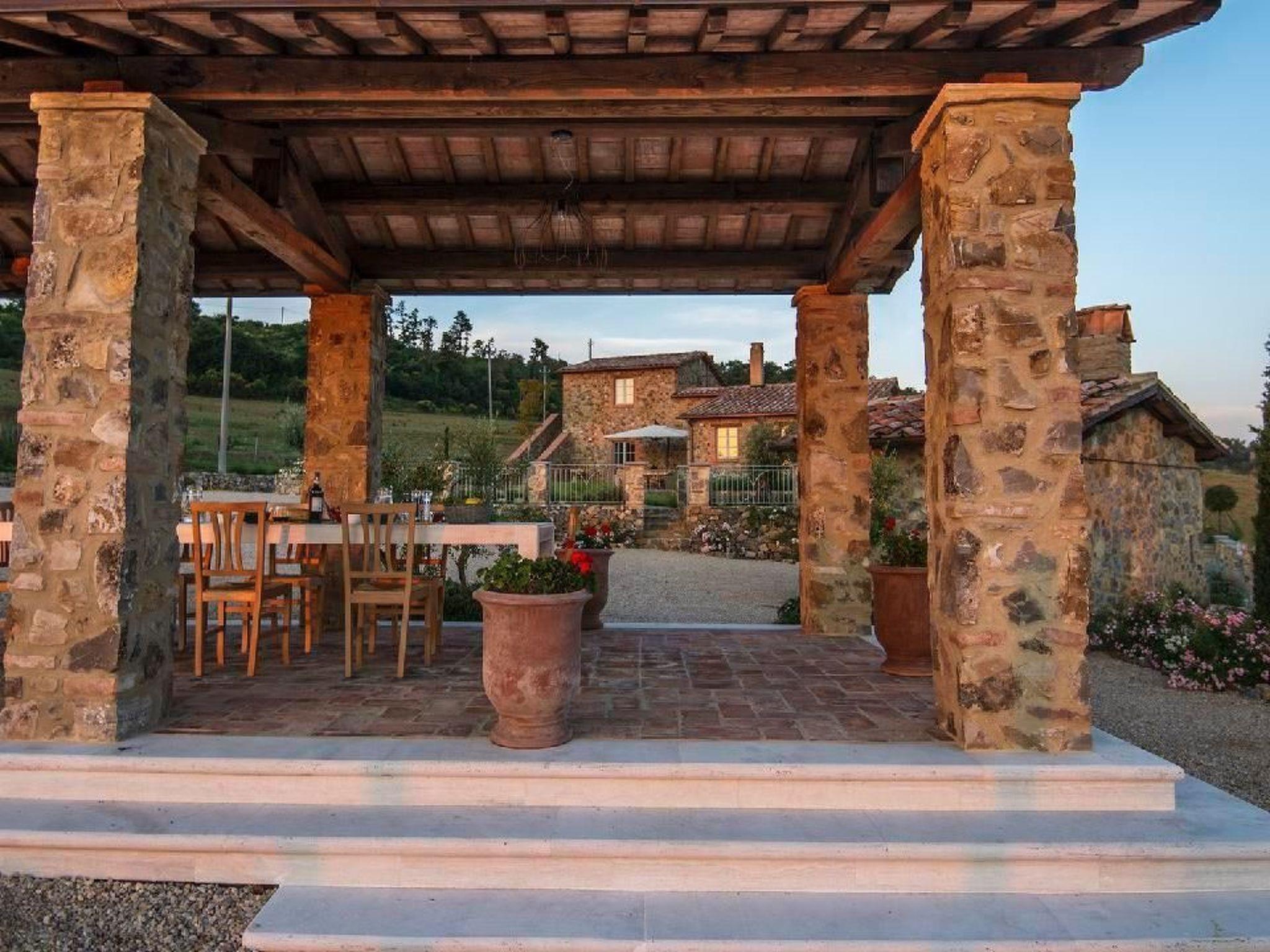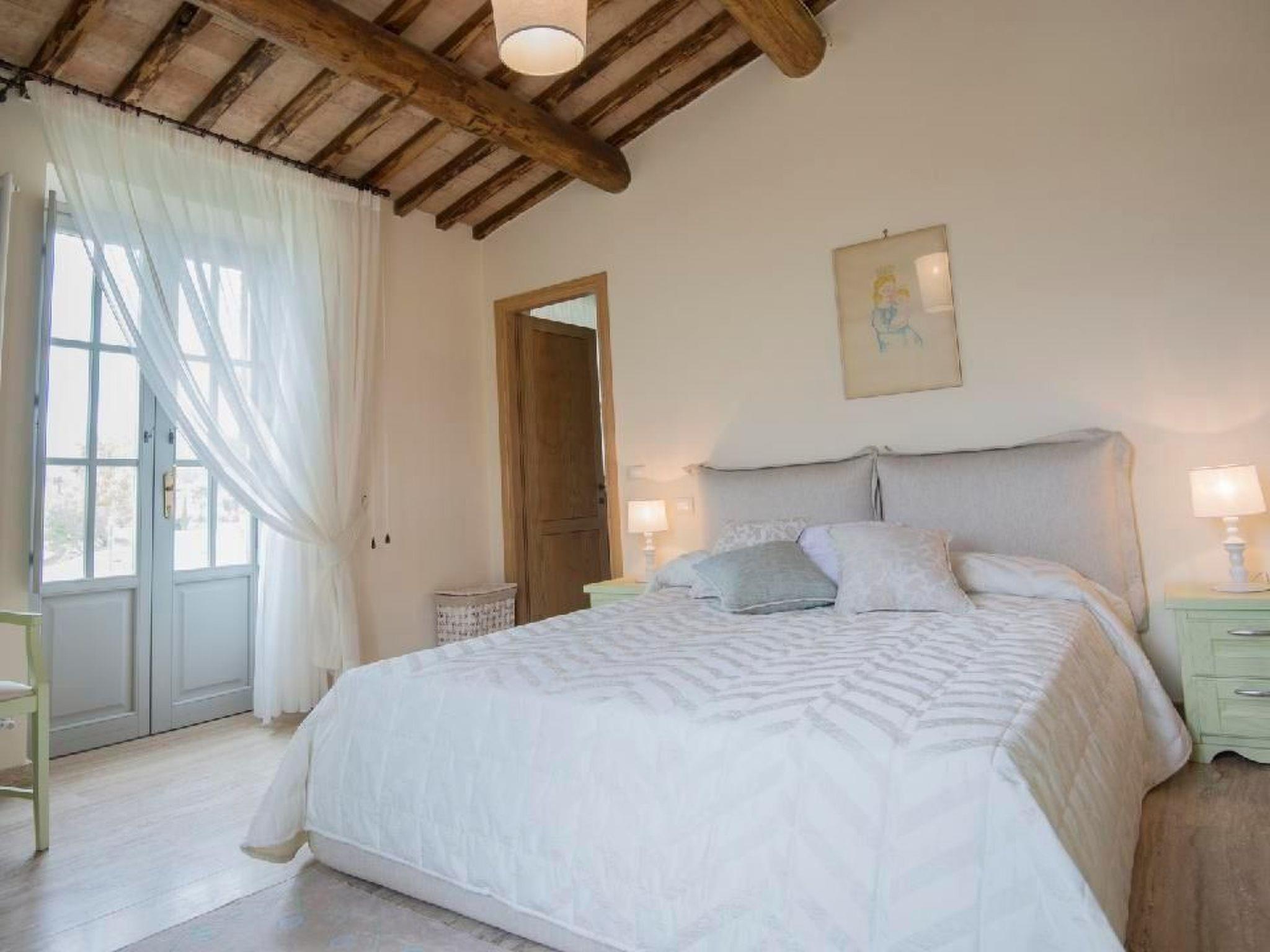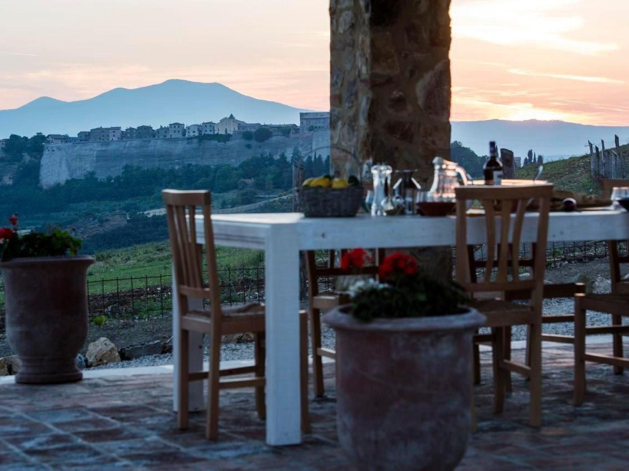 Casale Galli ist ein luxuriös renoviertes Landhaus, das einen fabelhaften und geräumigen Ort für einen perfekten Urlaub bietet. Es ist ein geräumiges Haus mit hochwertigen Unterkünften. Die elegante Einrichtung harmoniert perfekt mit der toskanischen Architektur und den typischen Mauern. Die Innenausstattung ist von höchster Qualität, wobei ein natürlicher Stil beibehalten wurde: Holzbalken, Terrakotta- und Travertinböden. Großer Wert wurde auf die Dekoration der verschiedenen Räume des Hauses gelegt, die mit von Meisterhand gefertigten Möbeln ausgestattet sind, die dem Inneren der Villa eine warme und gemütliche Atmosphäre verleihen. Die Villa ist von Grünflächen und einem großen Garten mit Olivenbäumen umgeben. Sie bietet den Gästen maximale Privatsphäre, um die Ruhe und die Schönheit der toskanischen Landschaft zu genießen. Die Aussicht von der Villa ist spektakulär! Von der Terrasse aus hat man einen wunderschönen Blick auf die grünen Wälder des Naturschutzgebietes Monte Rufeno und die toskanischen Hügel, wie eine Rückkehr in die Vergangenheit, weit weg von der täglichen Hektik. Casale Galli ist sehr günstig gelegen, um die vielen schönen Städte und Dörfer in Latium, Toskana und Umbrien zu besuchen. Darüber hinaus ermöglicht die zentrale Lage einen einfachen Zugang zu Seen, Bergen und dem Meer. Im Erdgeschoss befinden sich eine große, gut ausgestattete Küche, ein Wohnzimmer mit Kamin, ein Gästebad, drei Schlafzimmer, von denen eines über ein eigenes Bad mit Dusche verfügt, ein Einzelzimmer und ein Gemeinschaftsbad mit Dusche. Im ersten Stock, der nur von außen zugänglich ist, befindet sich ein Schlafzimmer mit eigenem Bad mit Jacuzzi und Dusche. Annehmlichkeiten: - Voll ausgestattete Küche mit Geschirrspüler, Espresso- und Cappuccinomaschine, Wasserkocher, Mixer, Herd, Backofen und Toaster - Tischdecken und Porzellanteller von lokalen Kunsthandwerkern - Wöchentlicher Wechsel der Bett-, Bad-, Pool- und Küchenwäsche - Große Terrasse mit Tisch, Stühlen und Sonnenschirm - Privater Panoramapool mit Jacuzzi (9 x 4,5), Dusche, Großer Garten mit Gemüsegarten und Forellenteich - Außenküche mit Holzofen, Grill und großer Veranda für Mittag- und Abendessen - Waschküche mit Waschmaschine/Trockner, Bügeleisen und Bügelbrett - Elektrisches Tor und Alarmanlage - Kostenloses Wi-Fi, große LED-Smart-TVs mit Internetzugang, DVD-Player, MP3-Player, USB-Anschluss, Dolby Surround-Digital-LED-TV in jedem Doppelzimmer - Parkplatz - Endreinigung Sonderleistungen auf Anfrage (gegen Aufpreis): - Privatkoch für Mittag- und Abendessen - Kochkurse - Individuelle Weintouren - Historische und kulturelle Führungen - Einkaufsservice bei Ihrer Ankunft - Spezielle Weine - Schönheitsbehandlungen und Massagen in der Villa - Buchungsservice für das Fonteverde Spa - Individueller Fotokurs - Individueller professioneller Fotoservice/Familienporträts - Privates Auto mit Chauffeur - Transfers vom und zum Flughafen und Bahnhof - Reiten mit Picknick entlang der schönen grünen Wege - Extra Reinigungs-, Wasch- und Bügelservice Kurzbeschreibung Sonstiges: Nichtraucherhaus Kurzbeschreibung 1 Anzahl der Küchen: 1 Wohnzimmer 1 Weitere Ausstattung des Wohnzimmers: - Bücher und Spiele - Großer LED-Smart-TV mit Internetzugang, DVD-Player, MP3-Player, USB-Anschluss, Dolby Surround Schlafzimmer 1 Weitere Ausstattung des Schlafzimmers: - Privates Badezimmer mit Dusche und WC - Digitaler LED-Fernseher - Haartrockner - Tür zur kleinen Terrasse Schlafzimmer 2 Weitere Schlafzimmerausstattung: - Digitaler LED-Fernseher - Haartrockner Schlafzimmer 3 Weitere Schlafzimmerausstattung: - Digitaler LED-Fernseher - Haartrockner - Tür zur kleinen Terrasse Schlafzimmer 5 Weitere Schlafzimmerausstattung: - Digitaler LED-Fernseher - Haartrockner - Tür zur kleinen Terrasse Küche 1 Weitere Ausstattung der Küche: Auswahl an Weinen (gegen Aufpreis) Bereich Mietmöglichkeiten: Autovermietung, Bootsvermietung Sportmöglichkeiten in der Umgebung: Angeln, Fußballplatz, Golfplatz, Jagd, Mountainbiking, Reitgebiet/-möglichkeiten, Segeln, Tennis, WasserskiBereich 1Ausflugsmöglichkeiten - Individuelle Weintouren - Historische und kulturelle FührungenLagebeschreibung: Casale Galli ist sehr günstig gelegen, um die vielen schönen Städte und Dörfer in den Regionen Latium, Toskana und Umbrien zu besuchen. Darüber hinaus ermöglicht die zentrale Lage einen einfachen Zugang zu Seen, Bergen und dem Meer.