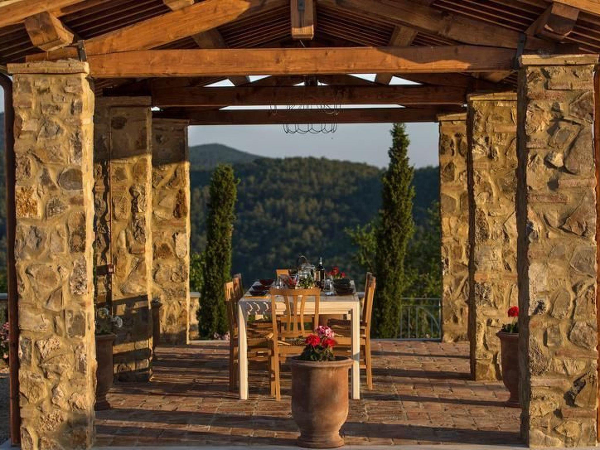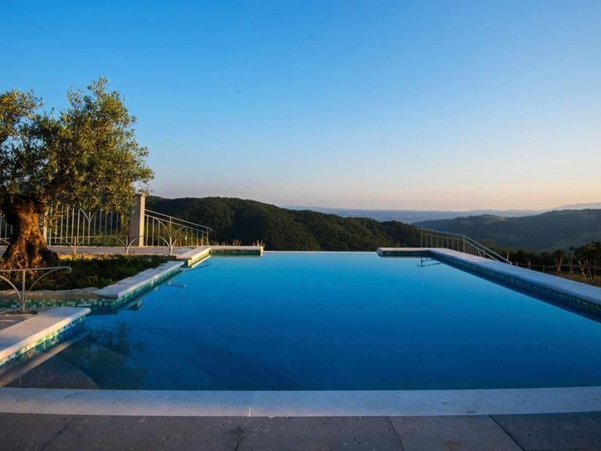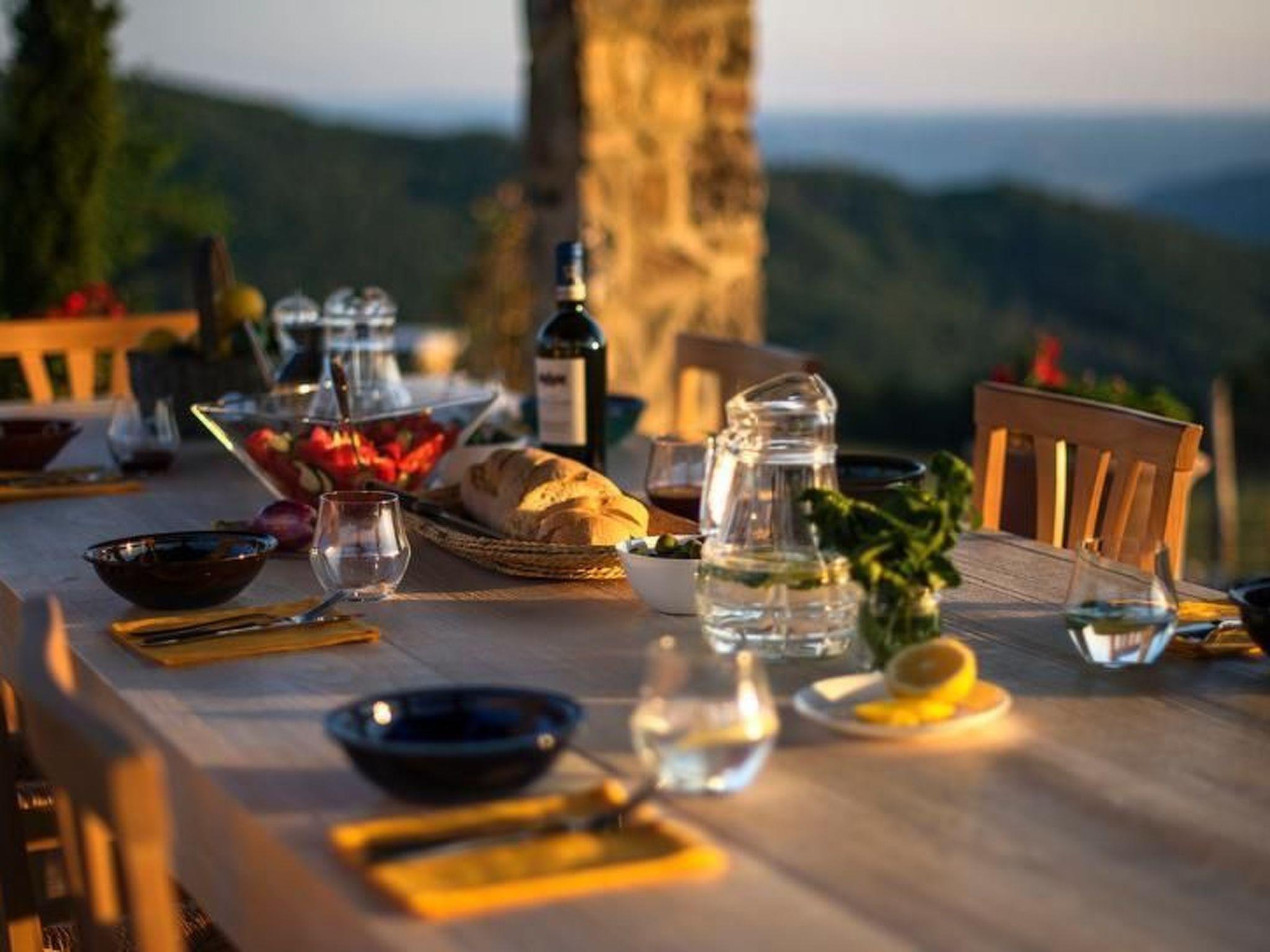 Casale Galli ist ein luxuriös renoviertes Landhaus, das einen fabelhaften und geräumigen Ort für einen perfekten Urlaub bietet. Es ist ein geräumiges Haus mit hochwertigen Unterkünften. Die elegante Einrichtung harmoniert perfekt mit der toskanischen Architektur und den typischen Mauern. Die Innenausstattung ist von höchster Qualität, wobei ein natürlicher Stil beibehalten wurde: Holzbalken, Terrakotta- und Travertinböden. Großer Wert wurde auf die Dekoration der verschiedenen Räume des Hauses gelegt, die mit von Meisterhand gefertigten Möbeln ausgestattet sind, die dem Inneren der Villa eine warme und gemütliche Atmosphäre verleihen. Die Villa ist von Grünflächen und einem großen Garten mit Olivenbäumen umgeben. Sie bietet den Gästen maximale Privatsphäre, um die Ruhe und die Schönheit der toskanischen Landschaft zu genießen. Die Aussicht von der Villa ist spektakulär! Von der Terrasse aus hat man einen wunderschönen Blick auf die grünen Wälder des Naturschutzgebietes Monte Rufeno und die toskanischen Hügel, wie eine Rückkehr in die Vergangenheit, weit weg von der täglichen Hektik. Casale Galli ist sehr günstig gelegen, um die vielen schönen Städte und Dörfer in Latium, Toskana und Umbrien zu besuchen. Darüber hinaus ermöglicht die zentrale Lage einen einfachen Zugang zu Seen, Bergen und dem Meer. Im Erdgeschoss befinden sich eine große, gut ausgestattete Küche, ein Wohnzimmer mit Kamin, ein Gästebad, drei Schlafzimmer, von denen eines über ein eigenes Bad mit Dusche verfügt, ein Einzelzimmer und ein Gemeinschaftsbad mit Dusche. Im ersten Stock, der nur von außen zugänglich ist, befindet sich ein Schlafzimmer mit eigenem Bad mit Jacuzzi und Dusche. Annehmlichkeiten: - Voll ausgestattete Küche mit Geschirrspüler, Espresso- und Cappuccinomaschine, Wasserkocher, Mixer, Herd, Backofen und Toaster - Tischdecken und Porzellanteller von lokalen Kunsthandwerkern - Wöchentlicher Wechsel der Bett-, Bad-, Pool- und Küchenwäsche - Große Terrasse mit Tisch, Stühlen und Sonnenschirm - Privater Panoramapool mit Jacuzzi (9 x 4,5), Dusche, Großer Garten mit Gemüsegarten und Forellenteich - Außenküche mit Holzofen, Grill und großer Veranda für Mittag- und Abendessen - Waschküche mit Waschmaschine/Trockner, Bügeleisen und Bügelbrett - Elektrisches Tor und Alarmanlage - Kostenloses Wi-Fi, große LED-Smart-TVs mit Internetzugang, DVD-Player, MP3-Player, USB-Anschluss, Dolby Surround-Digital-LED-TV in jedem Doppelzimmer - Parkplatz - Endreinigung Sonderleistungen auf Anfrage (gegen Aufpreis): - Privatkoch für Mittag- und Abendessen - Kochkurse - Individuelle Weintouren - Historische und kulturelle Führungen - Einkaufsservice bei Ihrer Ankunft - Spezielle Weine - Schönheitsbehandlungen und Massagen in der Villa - Buchungsservice für das Fonteverde Spa - Individueller Fotokurs - Individueller professioneller Fotoservice/Familienporträts - Privates Auto mit Chauffeur - Transfers vom und zum Flughafen und Bahnhof - Reiten mit Picknick entlang der schönen grünen Wege - Extra Reinigungs-, Wasch- und Bügelservice Kurzbeschreibung Sonstiges: Nichtraucherhaus Kurzbeschreibung 1 Anzahl der Küchen: 1 Wohnzimmer 1 Weitere Ausstattung des Wohnzimmers: - Bücher und Spiele - Großer LED-Smart-TV mit Internetzugang, DVD-Player, MP3-Player, USB-Anschluss, Dolby Surround Schlafzimmer 1 Weitere Ausstattung des Schlafzimmers: - Privates Badezimmer mit Dusche und WC - Digitaler LED-Fernseher - Haartrockner - Tür zur kleinen Terrasse Schlafzimmer 2 Weitere Schlafzimmerausstattung: - Digitaler LED-Fernseher - Haartrockner Schlafzimmer 3 Weitere Schlafzimmerausstattung: - Digitaler LED-Fernseher - Haartrockner - Tür zur kleinen Terrasse Schlafzimmer 5 Weitere Schlafzimmerausstattung: - Digitaler LED-Fernseher - Haartrockner - Tür zur kleinen Terrasse Küche 1 Weitere Ausstattung der Küche: Auswahl an Weinen (gegen Aufpreis) Bereich Mietmöglichkeiten: Autovermietung, Bootsvermietung Sportmöglichkeiten in der Umgebung: Angeln, Fußballplatz, Golfplatz, Jagd, Mountainbiking, Reitgebiet/-möglichkeiten, Segeln, Tennis, WasserskiBereich 1Ausflugsmöglichkeiten - Individuelle Weintouren - Historische und kulturelle FührungenLagebeschreibung: Casale Galli ist sehr günstig gelegen, um die vielen schönen Städte und Dörfer in den Regionen Latium, Toskana und Umbrien zu besuchen. Darüber hinaus ermöglicht die zentrale Lage einen einfachen Zugang zu Seen, Bergen und dem Meer.