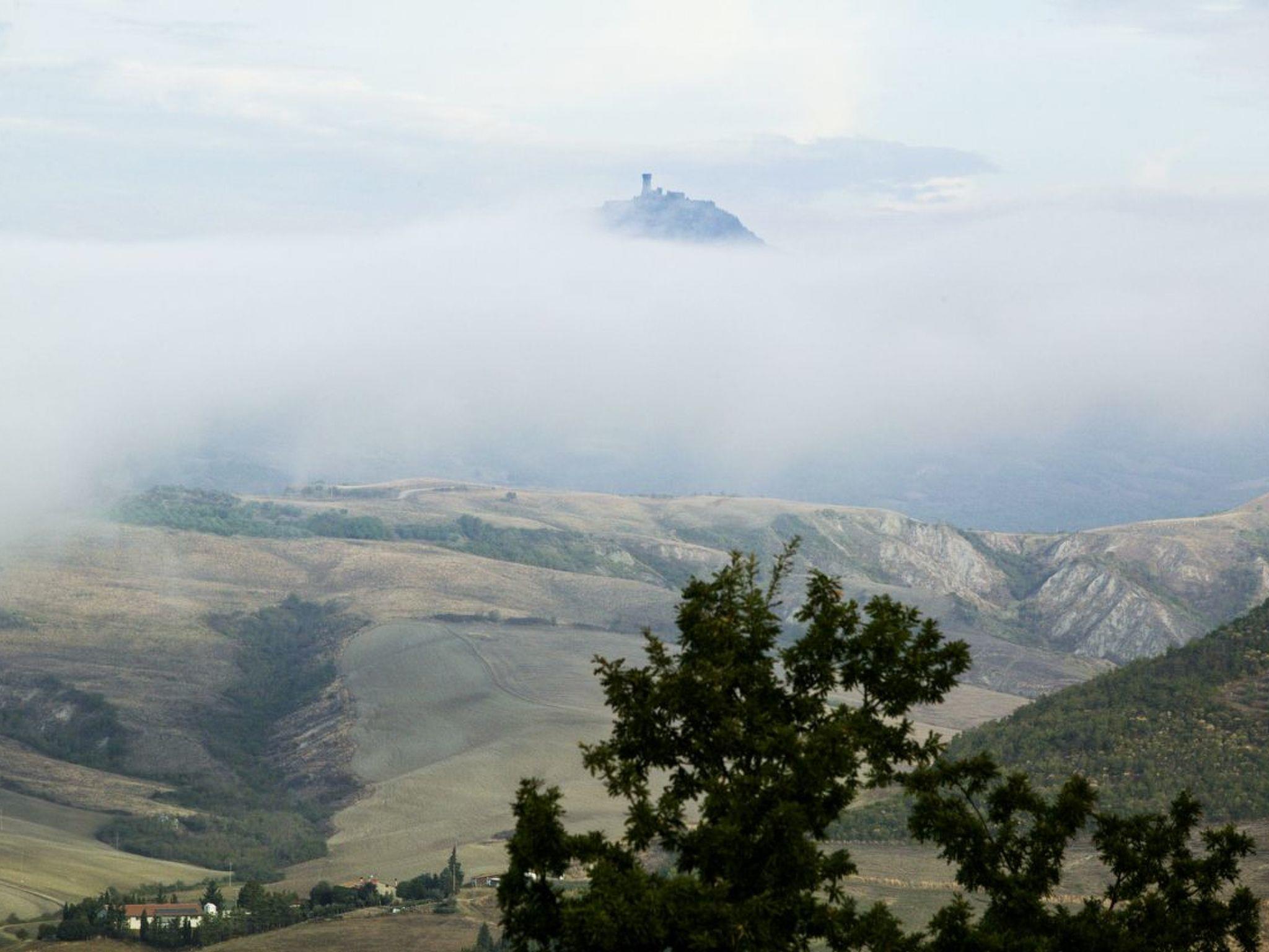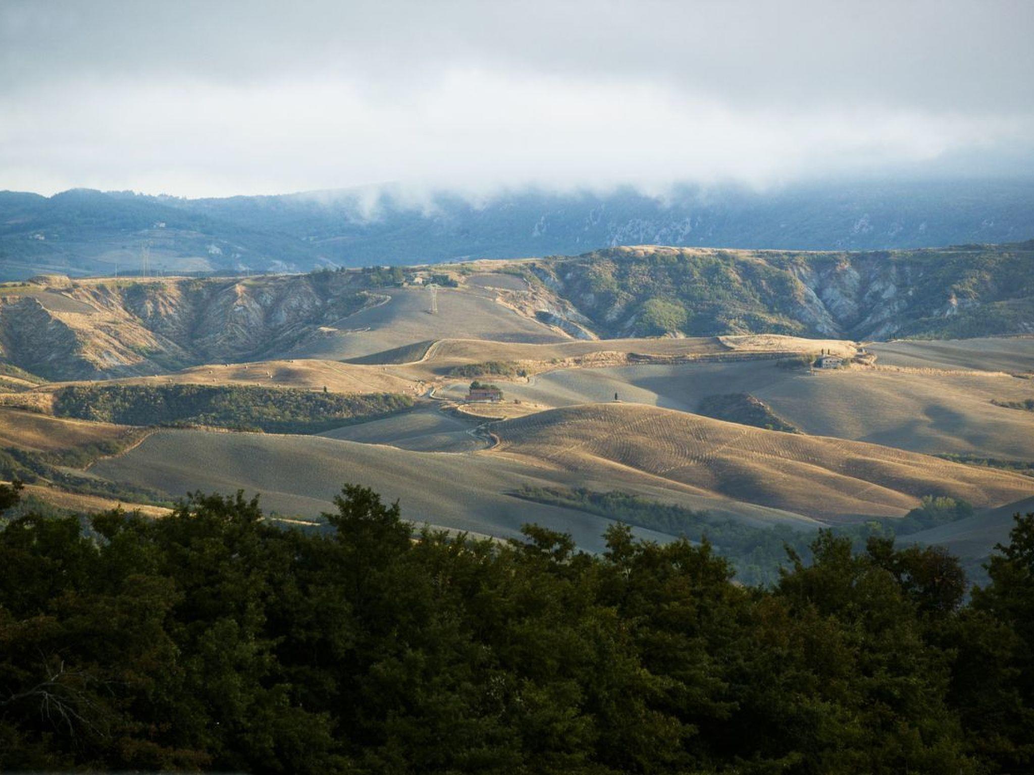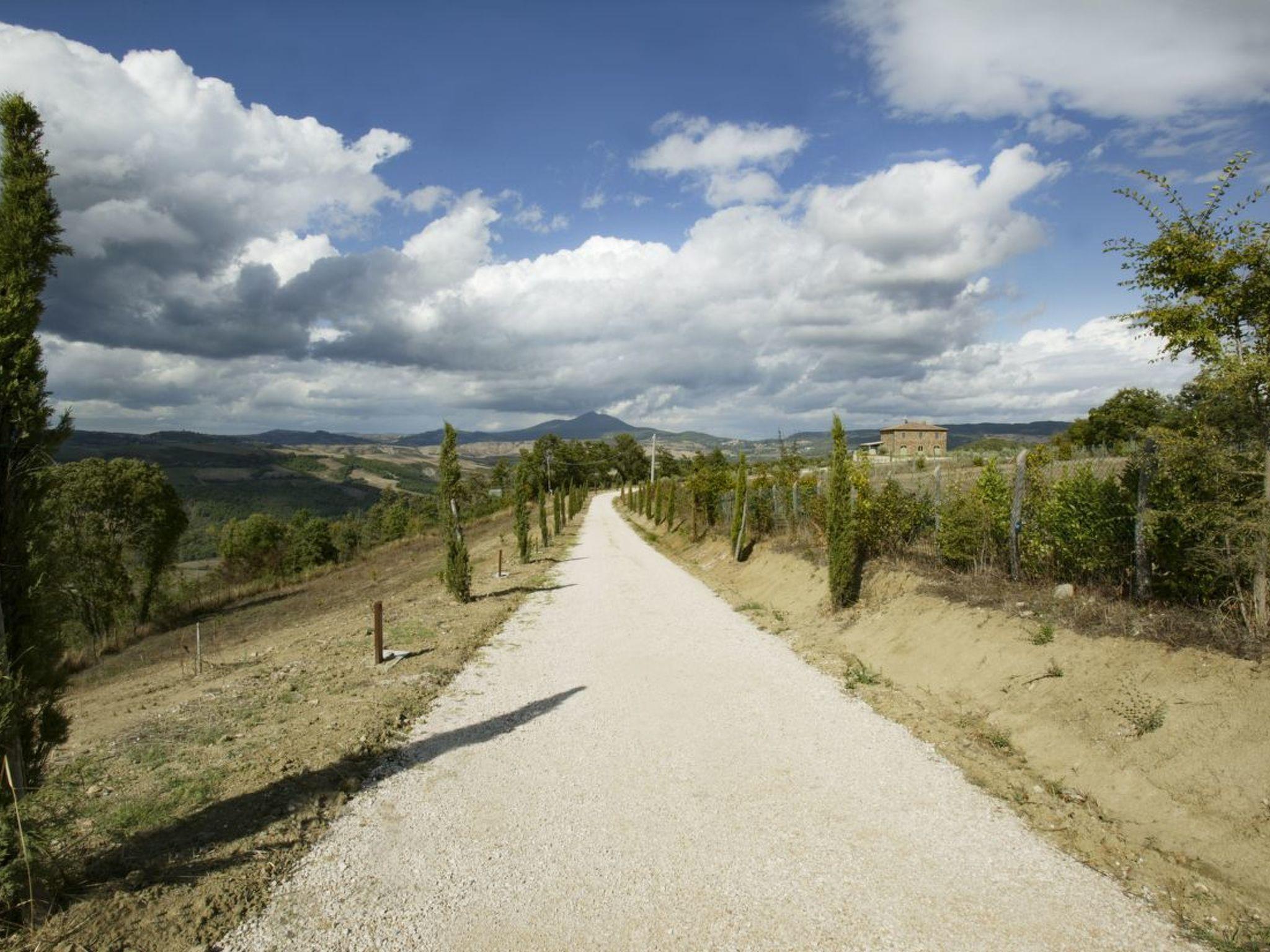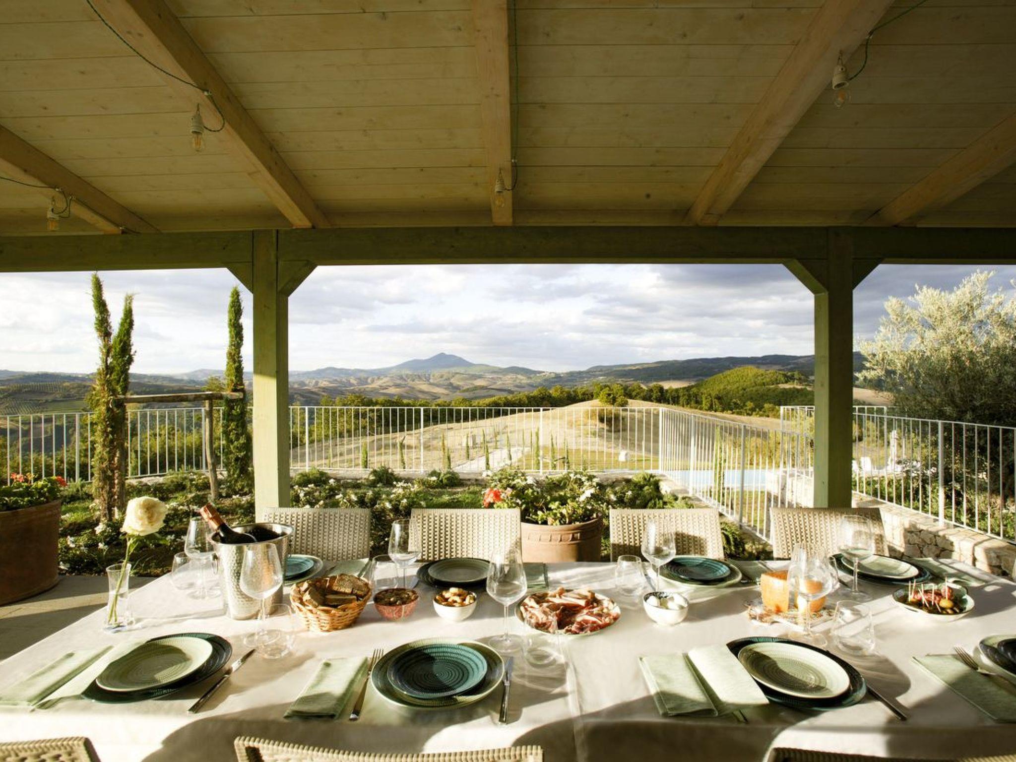 Die überdachte Terrasse bietet einen 360-Grad-Blick auf die Landschaft, den Monte Amiata und typische toskanische Dörfer.