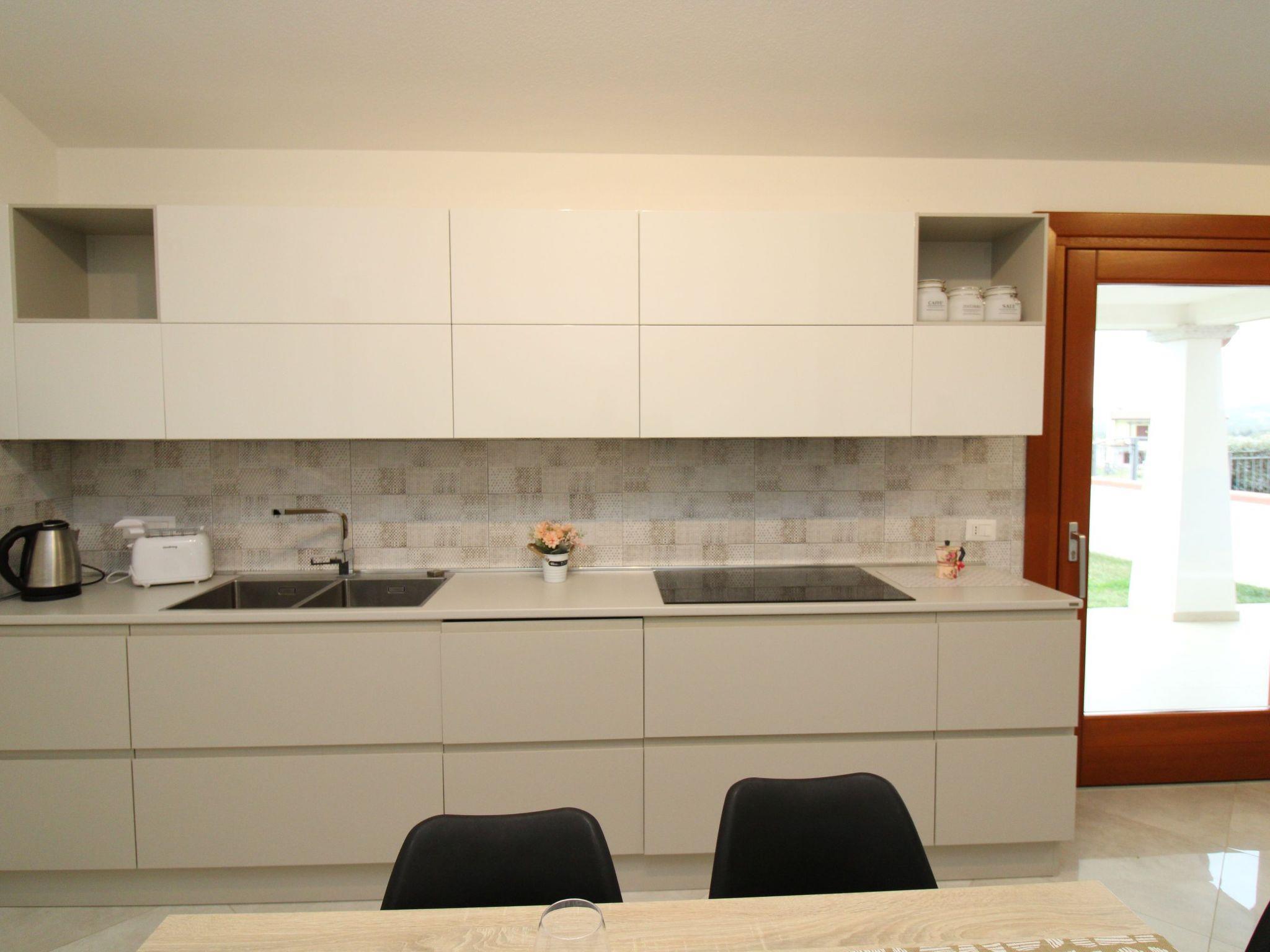 Die neue Küche ist modern und geschmackvoll eingerichtet und mit allen Annehmlichkeiten wie Induktionskochfeld, Backofen, Mikrowelle, Wasserkocher und praktischem Geschirrspüler ausgestattet. Im Außenbereich'esterno è presente anche la lavatrice.
