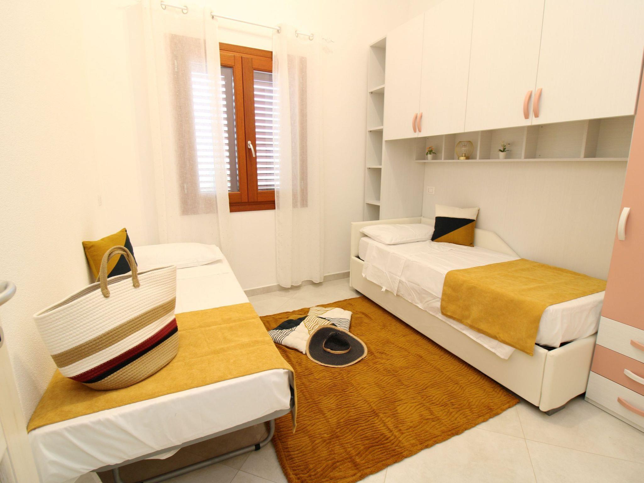 Das Haus'interno della casa, con una spaziosa superficie di 100 metri quadri, è stato curato nei minimi dettagli per offrire il massimo del relax e della funzionalità. L'besteht aus 3 gemütlichen Schlafzimmern, darunter ein Hauptschlafzimmer mit eigenem Bad; die beiden anderen Schlafzimmer haben jeweils zwei Einzelbetten, ideal für die Unterbringung von Kindern oder Freunden. Zwei Bäder mit bequemen Duschen garantieren Komfort und Privatsphäre für alle Gäste. Der offene Wohnbereich mit voll ausgestatteter Küche und Sitzecke mit Fernseher ist ideal für gemeinsame Momente nach einem Tag am Strand. Für heiße Tage gibt es im Ausgangsbereich eine Klimaanlage. Wifi ist im ganzen Haus verfügbar.