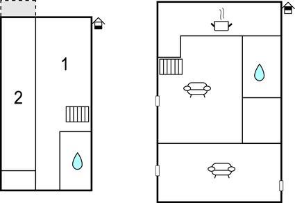 Badezimmer (nr. 1) - WC. Warmes und kaltes Wasser. Dusche