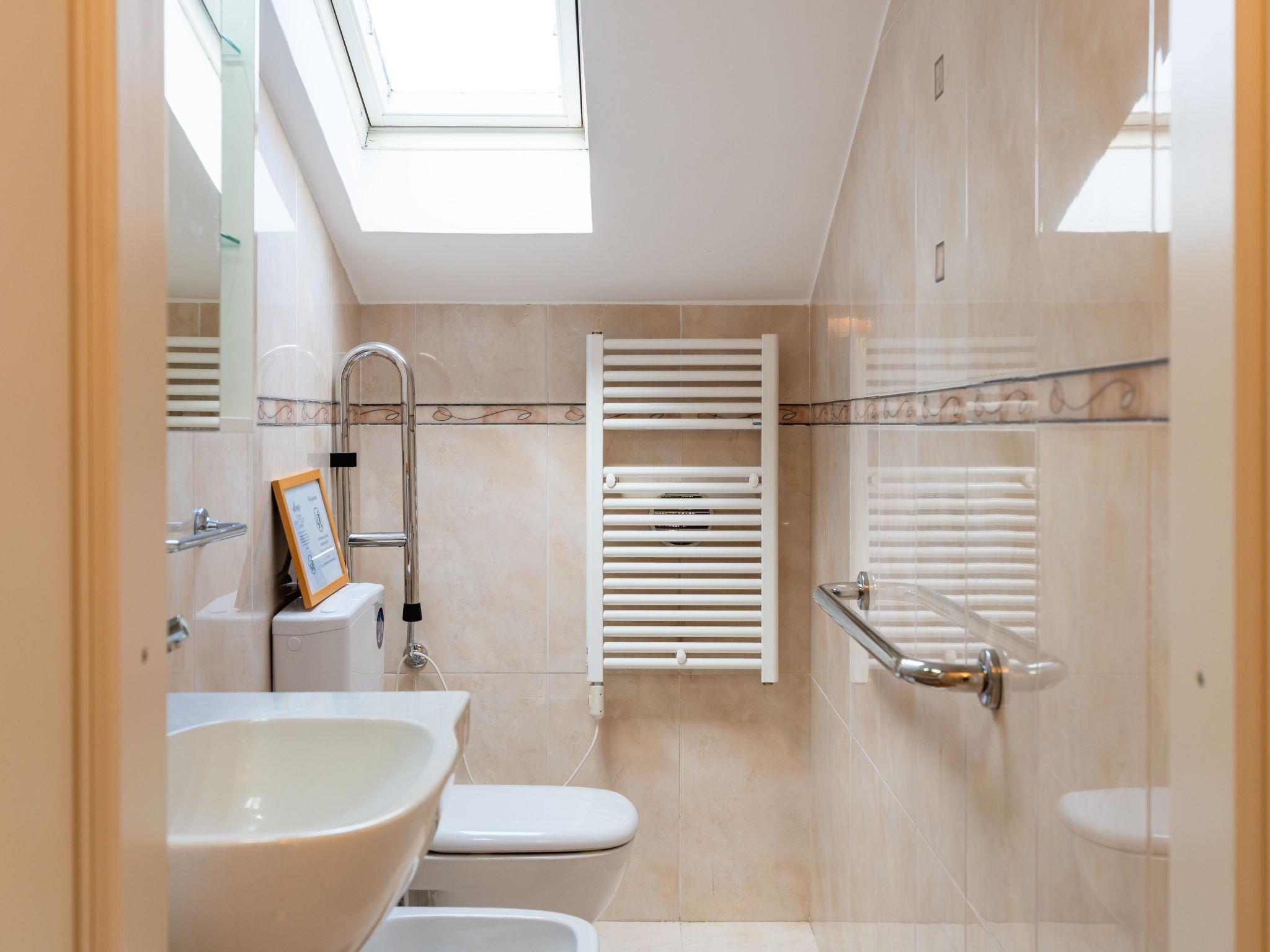 "By Center and Sea", 3-Zimmer-Dachterrassenwohnung 80 m2 im 3. Stock. Abgeschrägt, komfortabel und geschmackvoll eingerichtet: Wohn-/Esszimmer (120 cm, Länge 200 cm). 1 Doppelzimmer mit Dachfenster. 1 Doppelzimmer mit Dachfenster. Kochnische (Backofen, 4 Flammen, Toaster, Wasserkocher, Mikrowelle, elektrische Kaffeemaschine). Bad/Bidet/WC, Dusche/Bidet/WC. Klimaanlage, Warmluftheizung. Heizung nur verfügbar von 01.11. bis 15.04. Grosse Terrasse. Terrassenmöbel. Sicht auf die Ortschaft. Zur Verfügung: Waschmaschine, Bügeleisen, Kinderhochstuhl, Babybett bis 2 Jahre, Haartrockner. Internet (WLAN, gratis). Garage (extra). Bitte beachten: Nichtraucher-Haus. Rauchmelder, Feuerlöscher. IT009001B43A3O4WMG