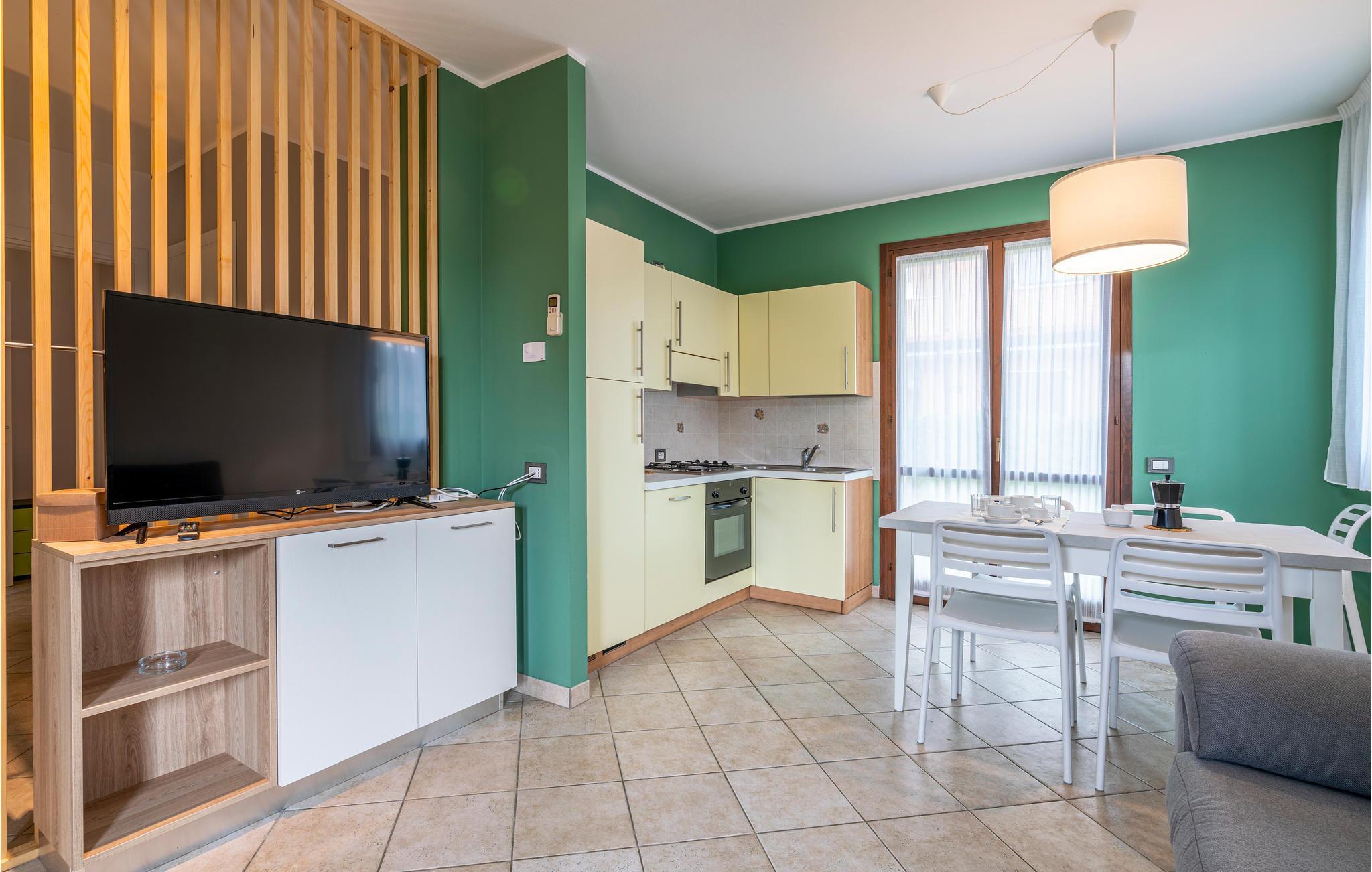 Albarella ist eine Privatinsel eingebettet in der Lagune südlich von Venedig, im Regionalpark des Podeltas und ist eine der elegantesten und am besten ausgestatteten Urlaubsziele an der Adria. Sie ist mit dem Festland durch eine Brücke verbunden. Die Insel verfügt über eine hervorragende touristische Infrastruktur und ist dem Sport gewidmet. Sie wahrt einen Schatz von Freizeitaktivitäten und Sehenswürdigkeiten, der jedem Wunsch nachkommt, im Zeichen absoluter Entspannung und für Groß und Klein. Der Kontakt mit der umgebenden Natur und die vielfältigen Unterhaltungsmöglichkeiten erlauben Ihnen, den Urlaub in vollen Zügen genießen zu können. Rund um die Uhr ist die Sicherheit der Gäste durch einen diskreten und aufmerksamen Sicherheits- und Wachdienst gewährleistet und die zum Einlass auf die Insel benötigte Magnetausweiskarte wird lediglich an Eigentümer und Gäste auf Albarella ausgehändigt. Auf der Insel besteht Autofahrverbot. Das Verkehrsmittel an erster Stelle ist das Fahrrad und sie können vor Ort für Erwachsene und Kinder zahlreiche unterschiedliche Modelle mieten. Tagsüber steht auch ein kleiner Elektrozug zur Verfügung. Die Insel ist das natürliche Habitat von Damhirschen, Fasanen, Hasen, Reihern, Rohrweihen, Seidenreihern und Stelzenläufern. Über 4 km lange freie und gut ausgestattete Sandstrände mit vielfältigen Veranstaltungen und Programme für Kinder. Ein familienfreundliches Reiseziel mit Kinderspielplatz mit Trampolinpark, Kugelparadies, mechanischem Stier und Baby-Kart-Bahn. Eine große Auswahl an sportlichen Aktivitäten wie 18-Loch-Golfplatz, Tennis, Reiten, Bogenschießen, Minigolf, Bowling, Aerobic, Joggen, Skaten, Basketball, Volleyball, Tennis, Fußball, Tischtennis, Beachvolleyball, Beachtennis, Beach-Fußball, Wassergymnastik, Schwimmen, Gymnastik im Freien, Segeln, Windsurfen, Angeln und Hochseefischfang. Organisation von Gruppenreisen in den Park des Podeltas und die nahe gelegenen historischen Städte wie Venedig, Stadt auf dem Wasser. Die Insel bietet zahlreiche Einkaufsmöglichkeiten für jedes Bedürfnis: ein Einkaufszentrum mit Supermarkt, Gastronomiewaren, Bäckerei, Konditorei, Kleidergeschäfte, Blumengeschäft, Zeitungen und Tabakwaren, Herren- und Damenfriseur, Optiker und Fotogeschäft, Snackbar, Video- und DVD-Verleih, Sportartikel, Schuhe und Taschen, Parfümerie, typische Kioske, Selbstbedienungswäscherei und Geldautomat. Im Sommer Gesundheitsdienst und medizinische Betreuung, Krankenwagendienst. Ein vielfältiges Angebot an Restaurants, Pizzerien, Bars, Kaffee, Eisdiele, Bierstube. Musikabende für Happy Hours, Diskoabende und verschiedene Abendveranstaltungen im Amphiteater. Das mehrsprachige Animationsteam der Insel unterhält Kinder, Jugendliche und Erwachsene mit Spielen und Sportwettkämpfen. Albarella verfügt über einen Hafen mit etwa 450 Anlegeplätzen für Boote von 6 bis 25 Metern, ausgestattet mit Strom, Wasseranschlüssen und Feuerlöschsystemen. Viele der Dienstleistungen sind kostenlos und andere sind mit der wiederaufladbaren Karte (bei Ankunft abholbar) kostengünstiger erhältlich. Die Bilder der Innenräume sind nur Beispielbilder.