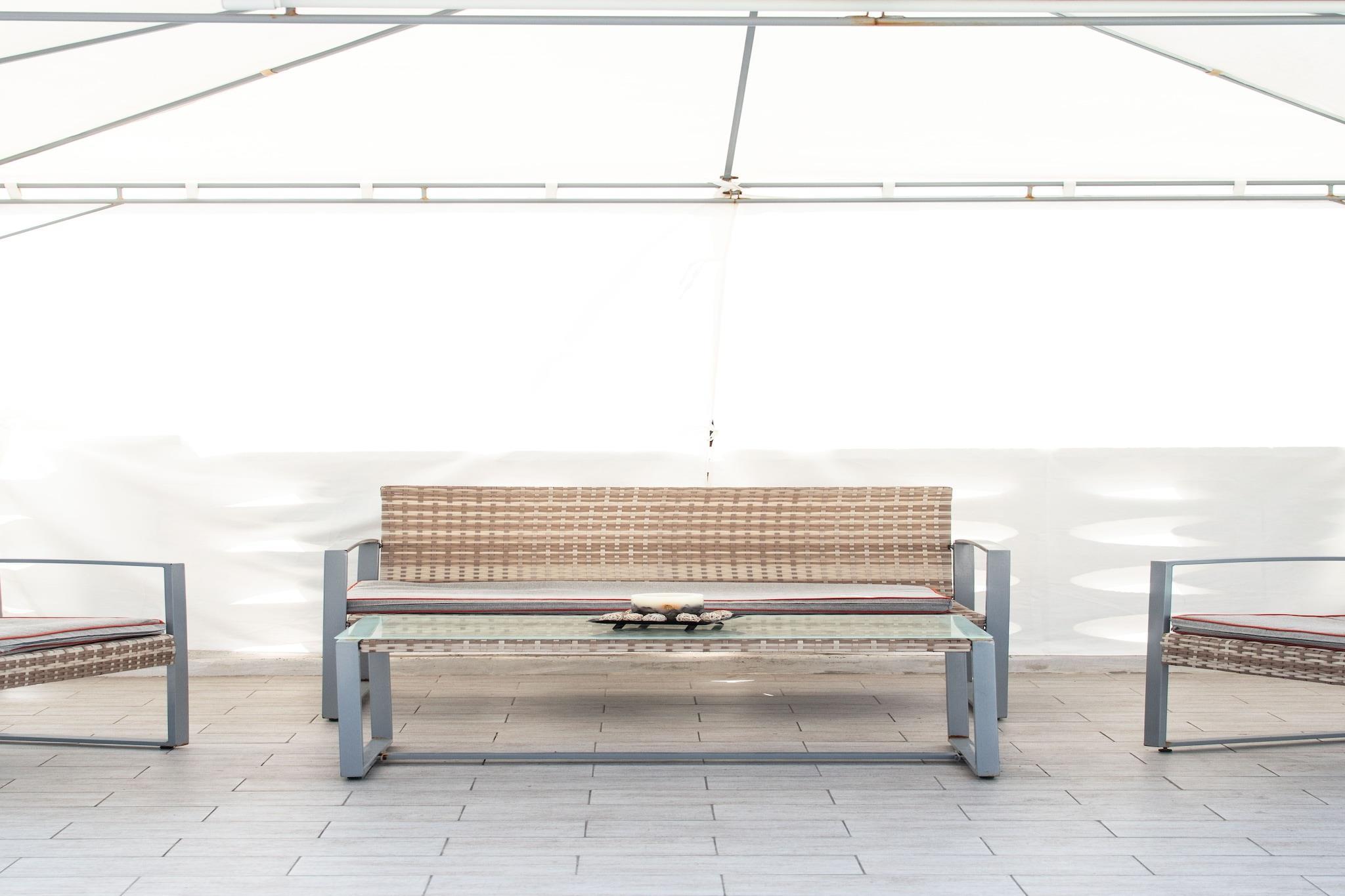 Parterre: (Küche(Herd, Kochplatte, Wasserkocher, Toaster, Backofen, Mikrowelle, Kühlschrank), Wohn/Esszimmer(Schlafcouch 1 Pers., TV, Esstisch), Schlafzimmer(Doppelbett(120 x 200 cm), Klimaanlage), Schlafzimmer(Doppelbett(120 x 200 cm), Klimaanlage), Badezimmer(Dusche, Waschbecken, Toilette, Bidet, Föhn)) Kaffeemaschine, Waschmaschine, Patio, Terrasse, Gartenmöbel, Liegen, Grill, Parkplatz, Liegestühle, Sonnenschirm, Pool(Gemeinschaftliche Nutzung mit anderen Gästen, geöffnet von Mai bis einschließlich 1/2 Okt), Kinderbett, Bügelbrett