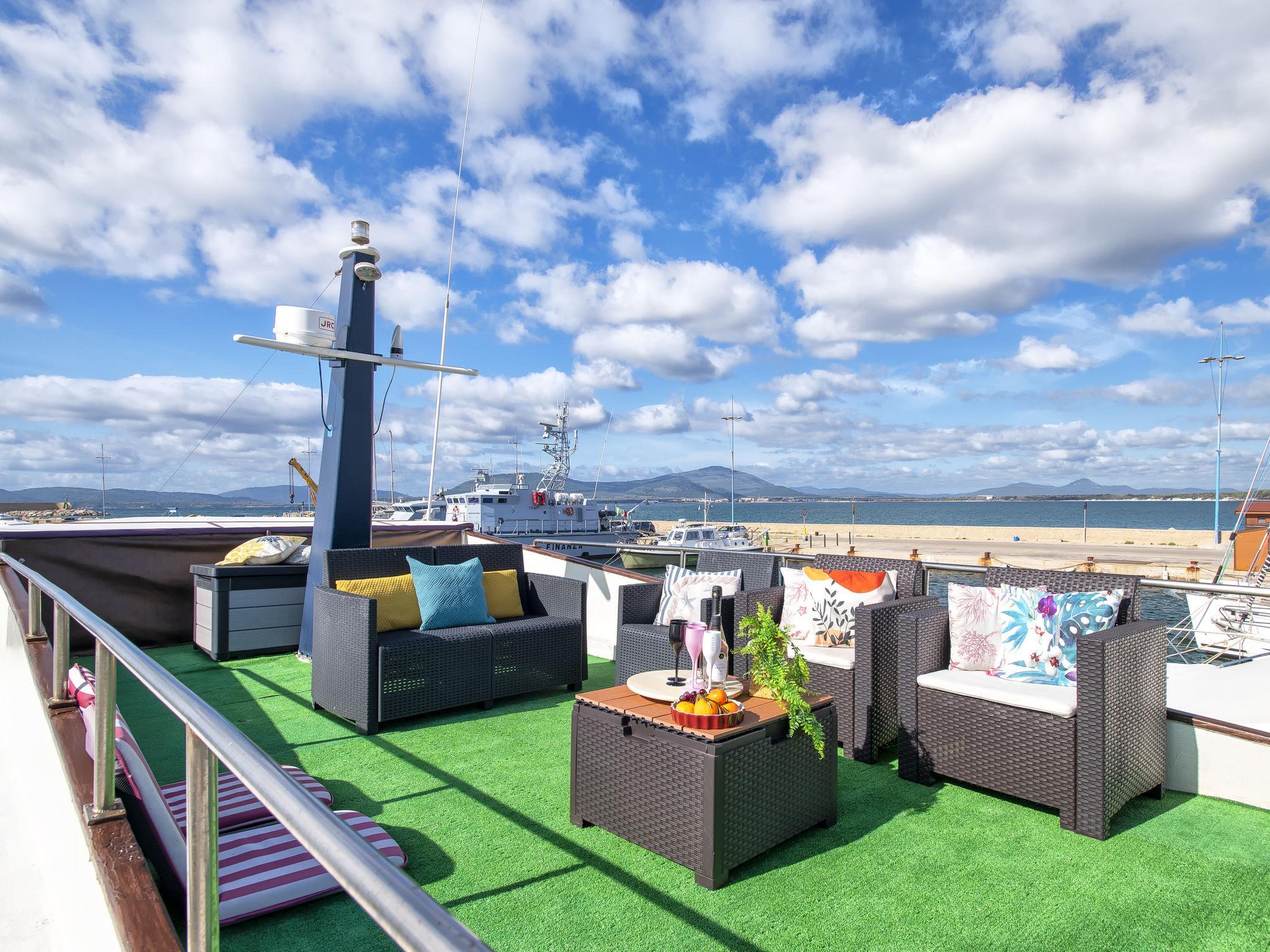 Hausboot "Alicudi", Baujahr 1968. 400 m vom Zentrum von Alghero, sonnige Lage, 1 m direkt am Meer. Im Hause: Solarium. Motorboot (auf Bestellung). Koch möglich (extra). Getränkeservice und Frühstück (inkl.). Parkplatz in 50 m. Einkaufsgeschäft 1.4 km, Supermarkt 500 m, Restaurant 600 m, Bar 500 m, Bushaltestelle 700 m, Sandstrand "San Giovanni" 480 m. Nahe gelegene Sehenswürdigkeiten: Bosa 46 km, Stintino 46 km, Porto Torres 34 km, olbia 140 km, Castelsardo 72 km. Bitte beachten: Fahrzeug empfohlen. Historisches Boot des Wissenschaftskommunikators Piero Angela, es werden Partys organisiert.