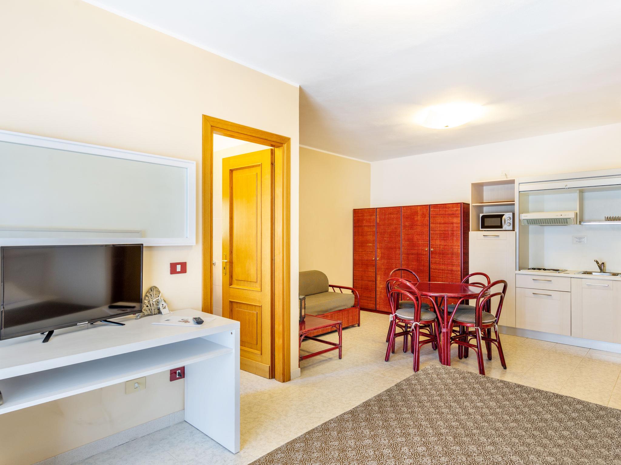 1-Zimmer-Wohnung 38 m2. Geräumig, zweckmässig eingerichtet: Wohn-/Schlafzimmer mit 1 Doppelbett, Esstisch und TV. Kleine Kochnische (2 Induktionskochplatten, Toaster, Wasserkocher, Mikrowelle). Dusche/Bidet/WC. Klimaanlage, Warmluftheizung. Balkon. Balkonmöbel. Zur Verfügung: Kinderhochstuhl, Babybett (extra), Haartrockner. Internet (WLAN, gratis). Bitte beachten: Nichtraucher-Unterkunft. Maximal 1 kleines Haustier/Hund erlaubt. IT090003A1000F2107