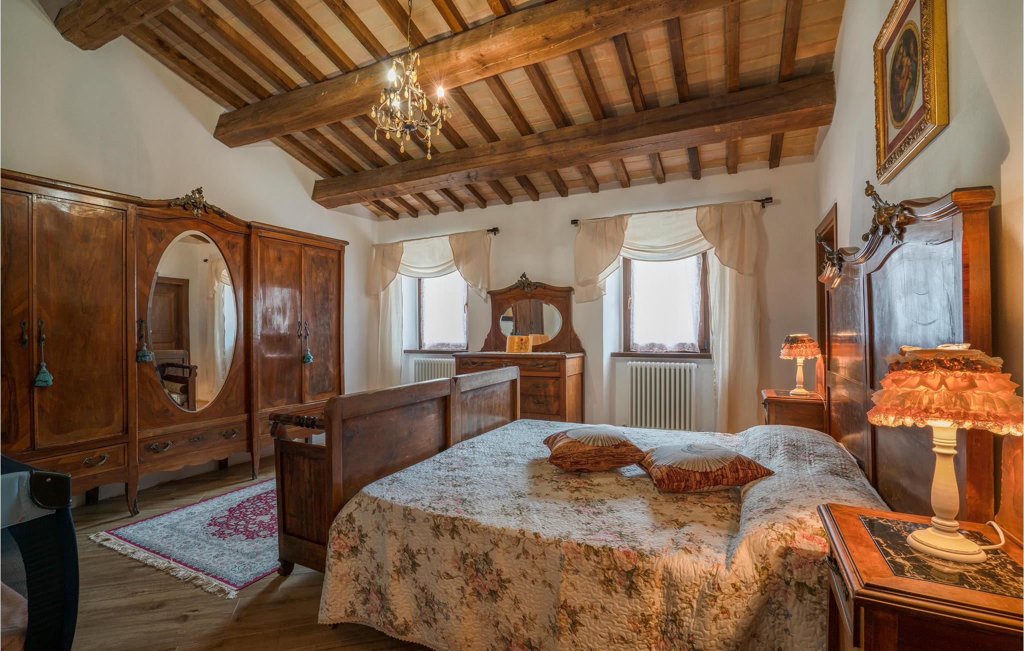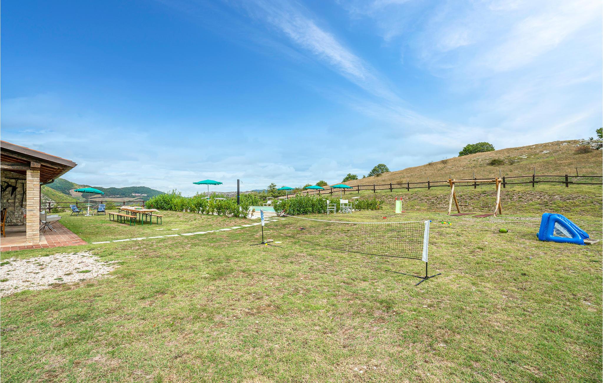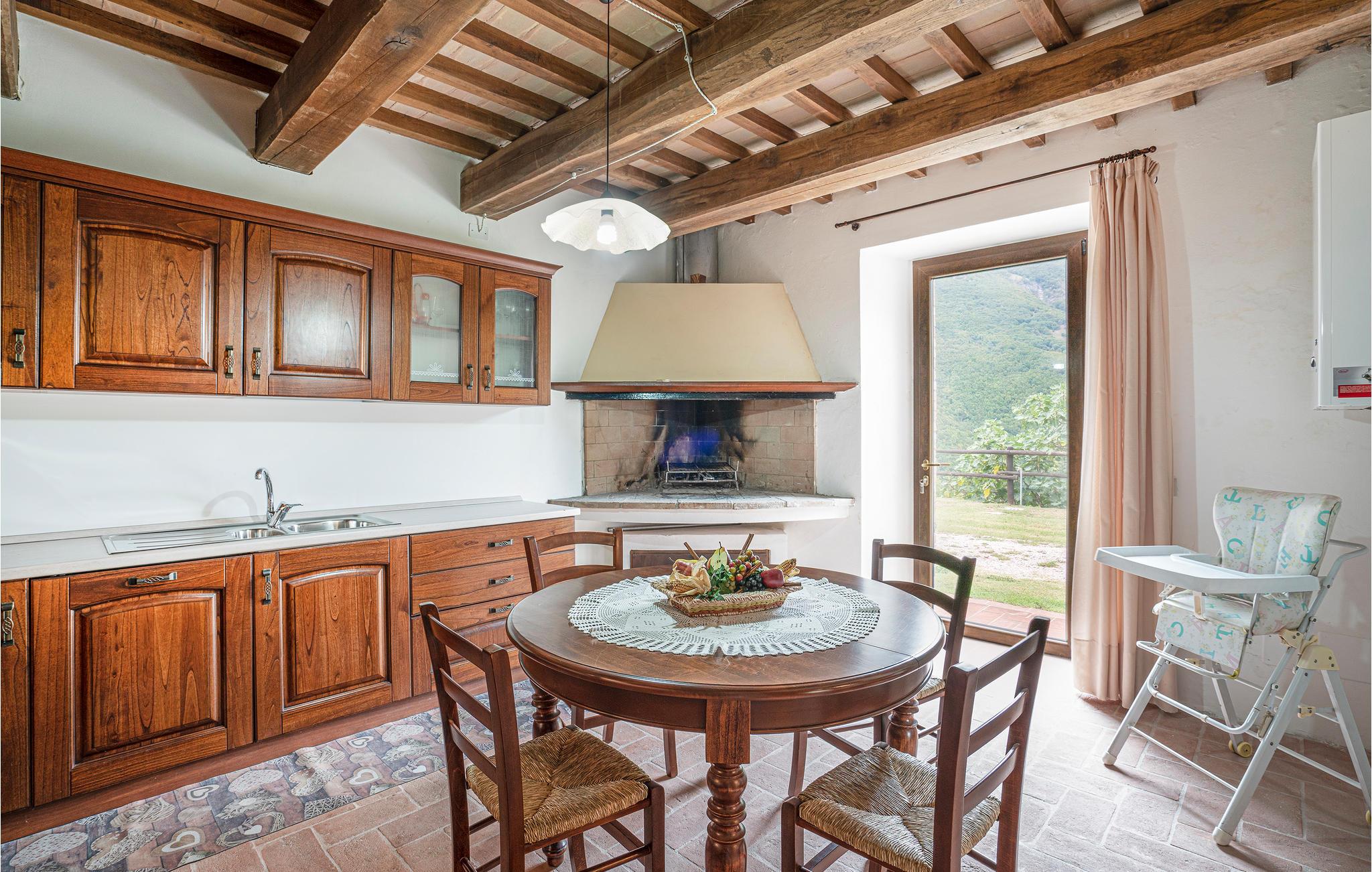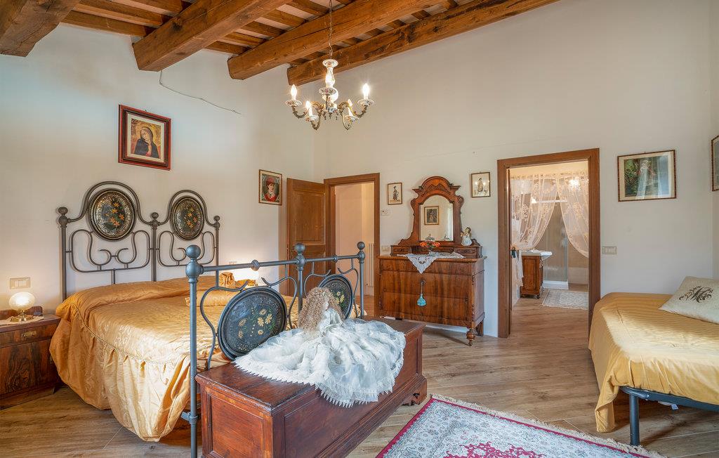 Zwischen Piobbico und Apecchio (je 6 km) liegt dieses komfortable Landhaus auf einem Berg in 800 m Höhe. Die Einzellage ist ideal für Gruppen, die ungestört Ferien in der Natur verbringen möchten. Das ehemalige Bauernhaus wurde stilvoll restauriert und eingerichtet. In den beiden einstigen Ställen im Ergeschoss stehen Ihnen heute zwei große Wohnräume mit langer Tafel, offenem Kamin und Billardtisch zur Verfügung: Ideal auch für Gruppenaktivitäten wie Musizieren, Tanzen, Yoga. Die Schlafzimmer liegen im 1. Stock. Vorm Haus gib es eine überdachte Terrasse mit Barbecue und Pizzaofen. Das weitläufige Grundstück ist vollständig umzäunt. Hier gibt es genug Platz zum Parken, für alle möglichen Ballspiele und hier liegt natürlich auch der Poolbereich, mit Liegestühlen. Von überall haben Sie einen einzigartigen Panoramablick auf den gegenüber liegenden Monte Nerone (1525m) . Wanderwege laden von hier zum Trekken und Biken und führen Sie in die beeindruckende Landschaft, gezeichnet von weiten Wäldern, schroffen Hängen und kühlen Wildbächen. Besichtigen Sie Urbino und Città di Castello (je 35 km) und erobern Sie für sich die kleinen netten Städtchen der Umgebung, wo Sie überall die lokalen Spezialitäten probieren können, als da wären: Trüffelgerichte aller Art, ganz besondere Biersorten, Wildgerichte und leckeren Käse. Zur Abwechslung mal ein Tag an der Adria? Nach Pesaro und Fano sind es 65 km. Zufahrt über 1,6 km unasphaltierte Straße, für tief liegende Autos nicht geeignet.